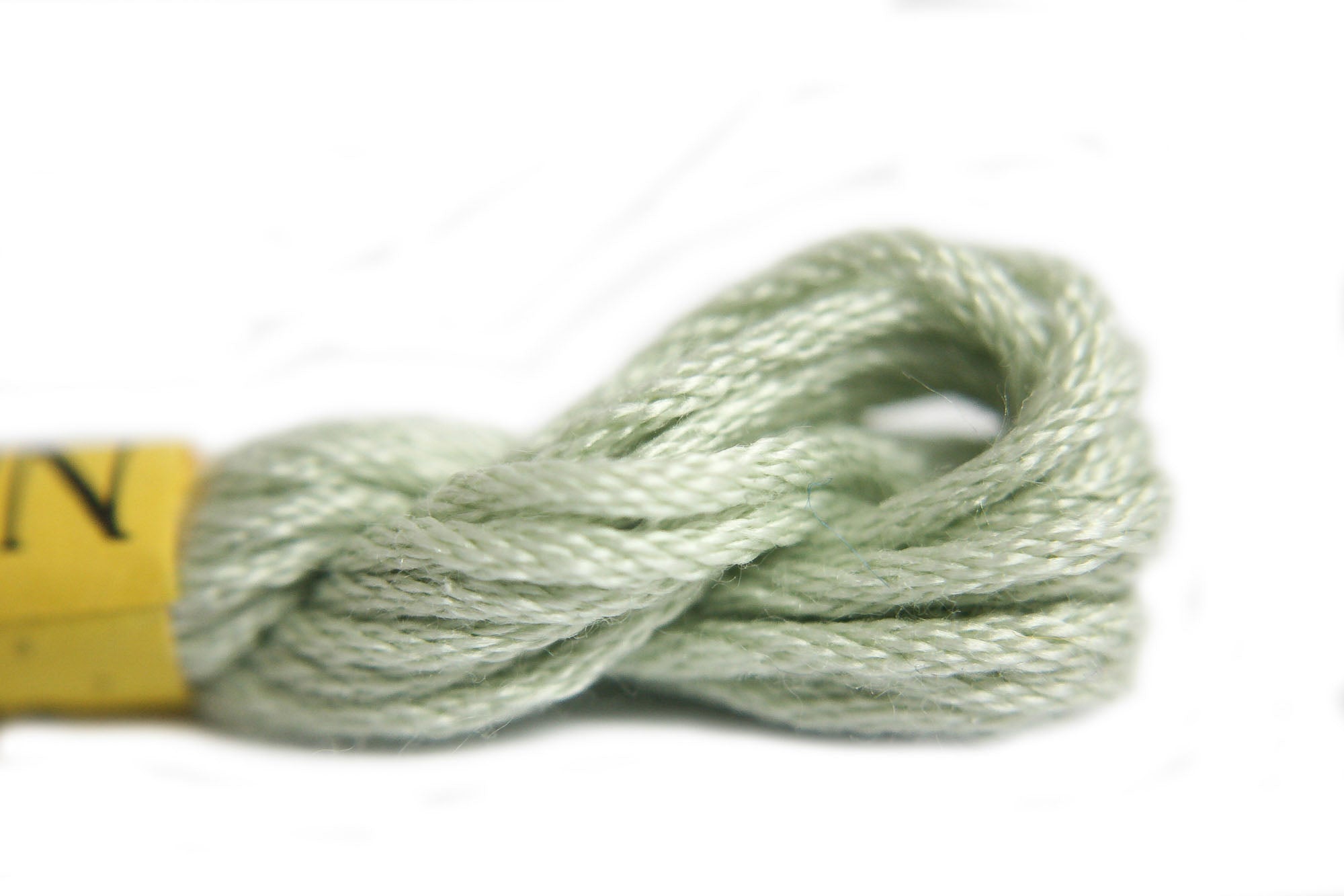 This is Silk from Needlepoint Inc in color 874 Moonlight Pastel Range. A stranded silk that is perfect for embroidery, needlepoint, and cross stitch. Use all 8 strands on 13 mesh, 3 or 4 strands on 18 mesh. 1 strand is about equal to one strand of DMC Cotton Floss.