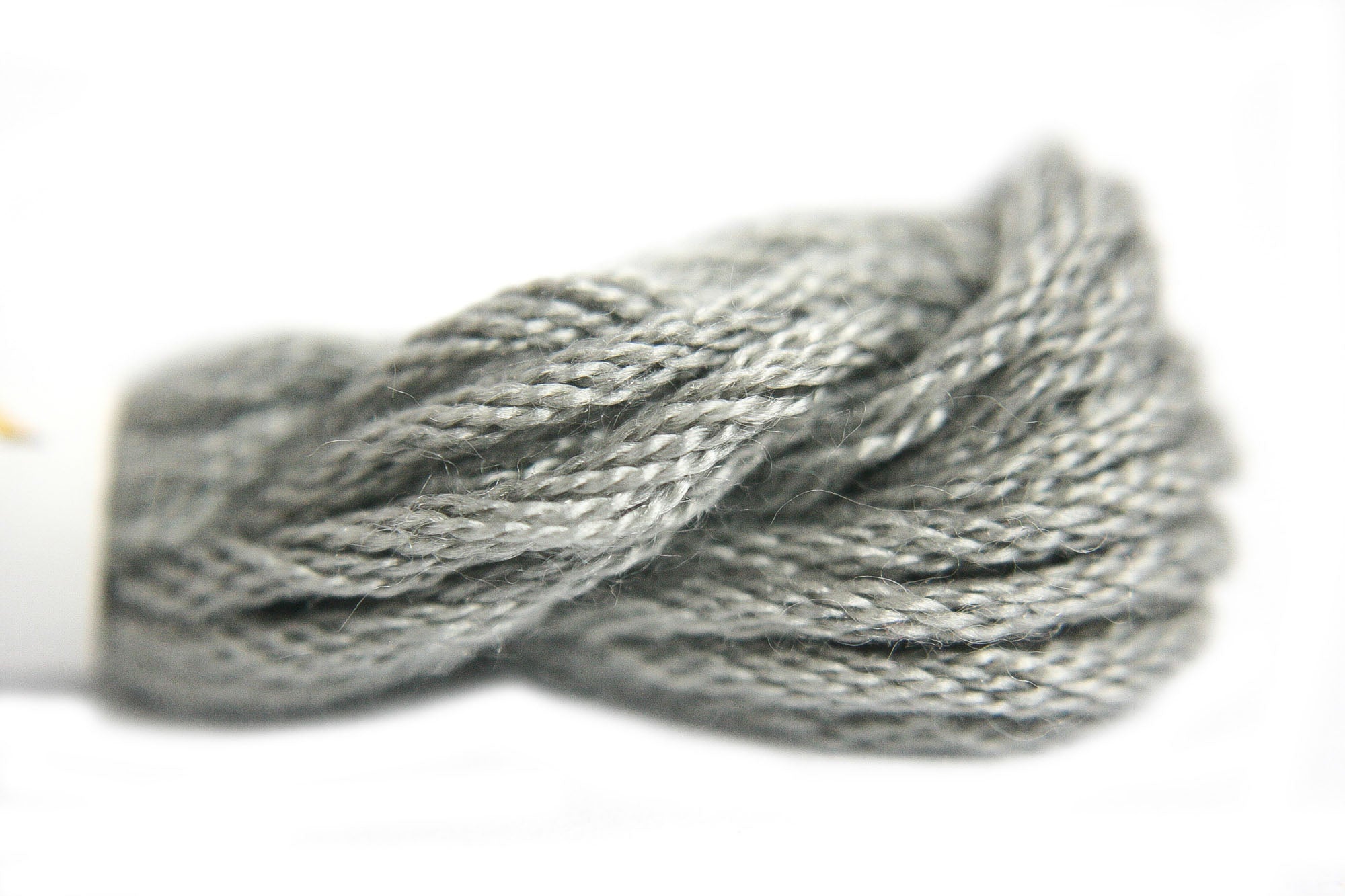 This is Silk from Needlepoint Inc in color 963 Dapple Gray Range. A stranded silk that is perfect for embroidery, needlepoint, and cross stitch. Use all 8 strands on 13 mesh, 3 or 4 strands on 18 mesh. 1 strand is about equal to one strand of DMC Cotton Floss.