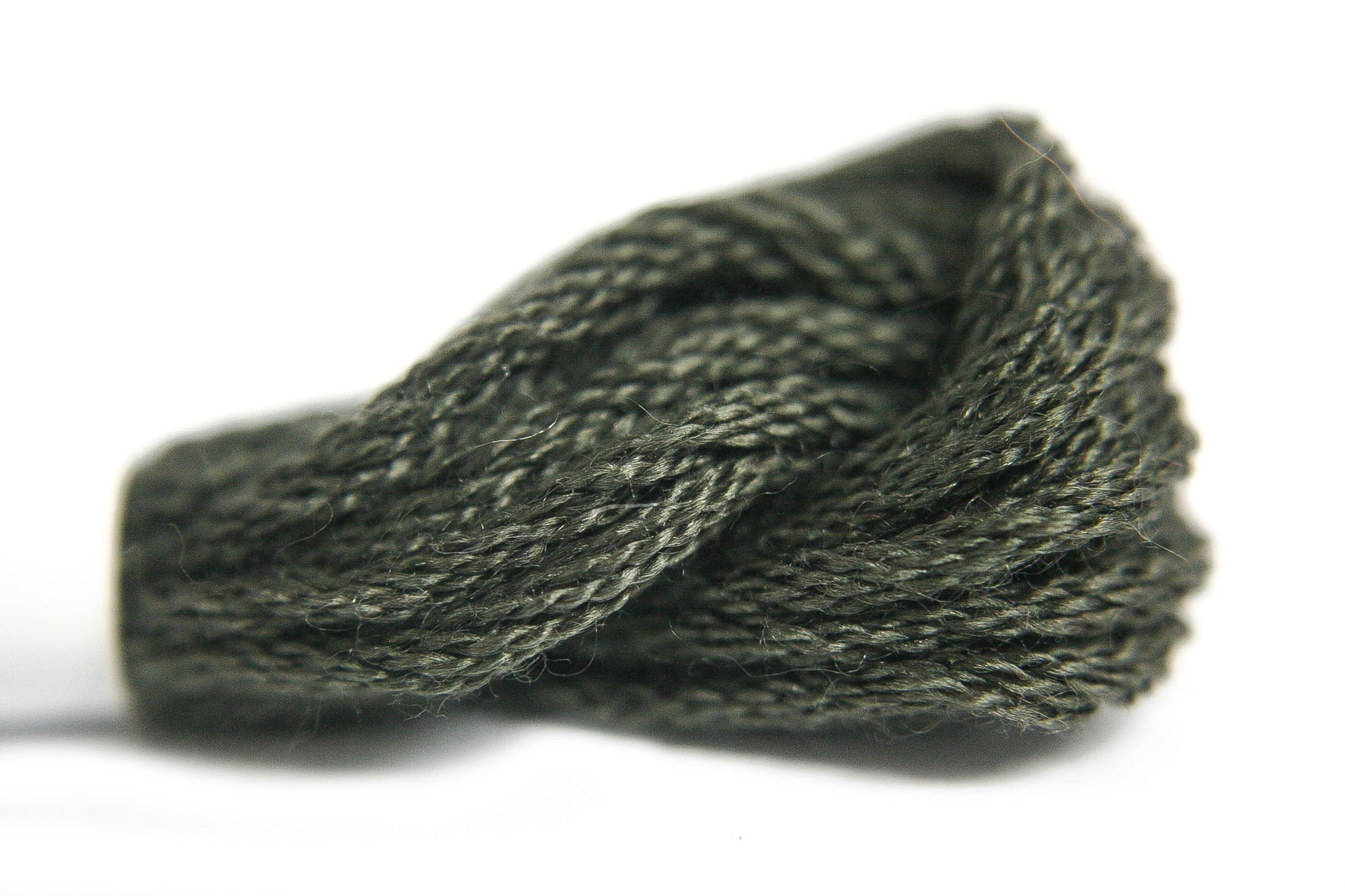 This is Silk from Needlepoint Inc in color 966 Dapple Gray Range. A stranded silk that is perfect for embroidery, needlepoint, and cross stitch. Use all 8 strands on 13 mesh, 3 or 4 strands on 18 mesh. 1 strand is about equal to one strand of DMC Cotton Floss.