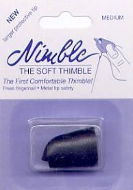 Made of leather, this durable thimble conforms to the shape of your finger, stretches for a long-lasting fit and allows you to control the needles as it glides through. A metal tip safely guides the needle. An opening at the end of the thimble keeps your nail free and lets your fingertip breathe.
