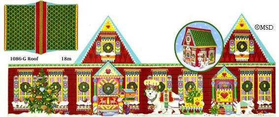 A beautiful hand painted needlepoint canvas from Melissa Shirley Designs. Nordic Christmas House.