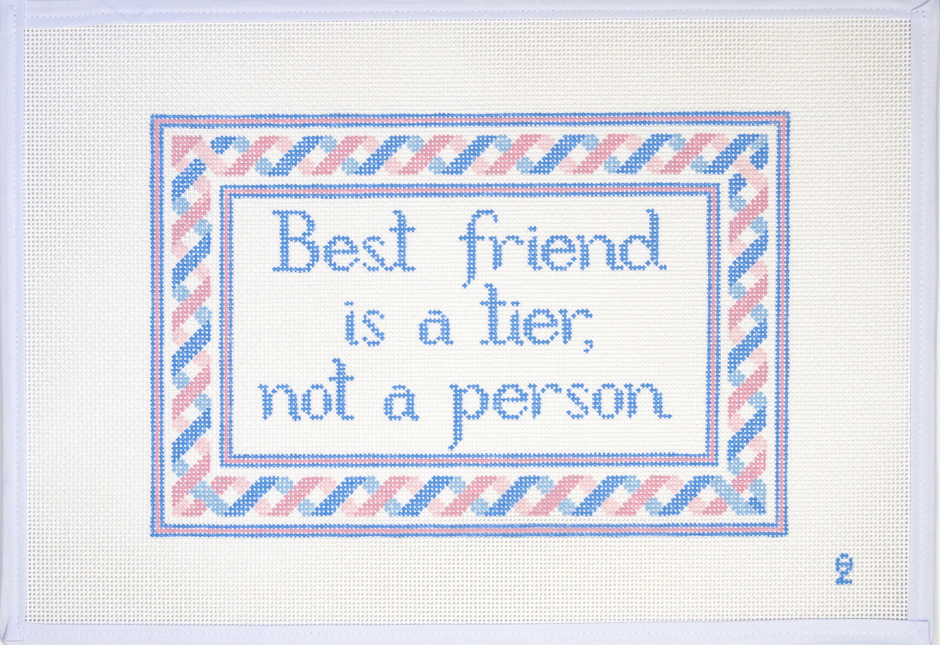 This is a needlepoint canvas from Oz Needle and Thread. It features a design which reads "Best Friend is a Tier, Not a Person".