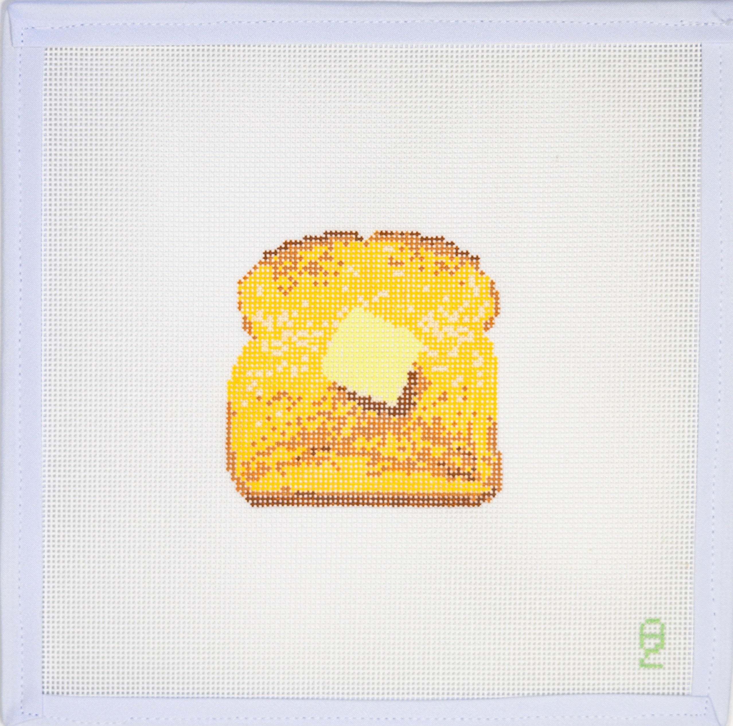 This hand painted needlepoint canvas by Oz Needle and Thread a warm slice of buttered toast.