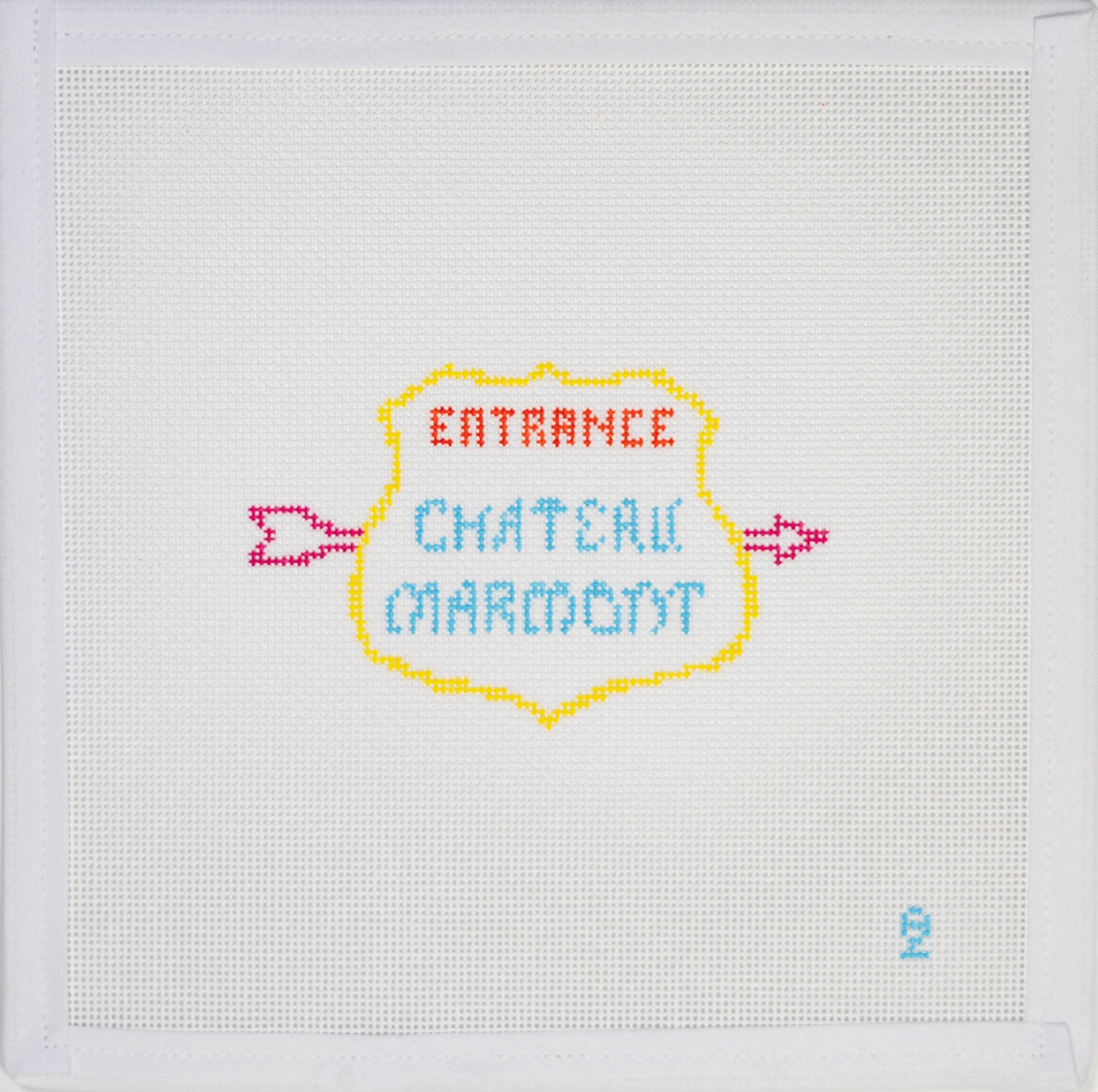 This hand painted needlepoint canvas by Oz Needle and Thread features the sign from the famous hang out spot of the glitterati.