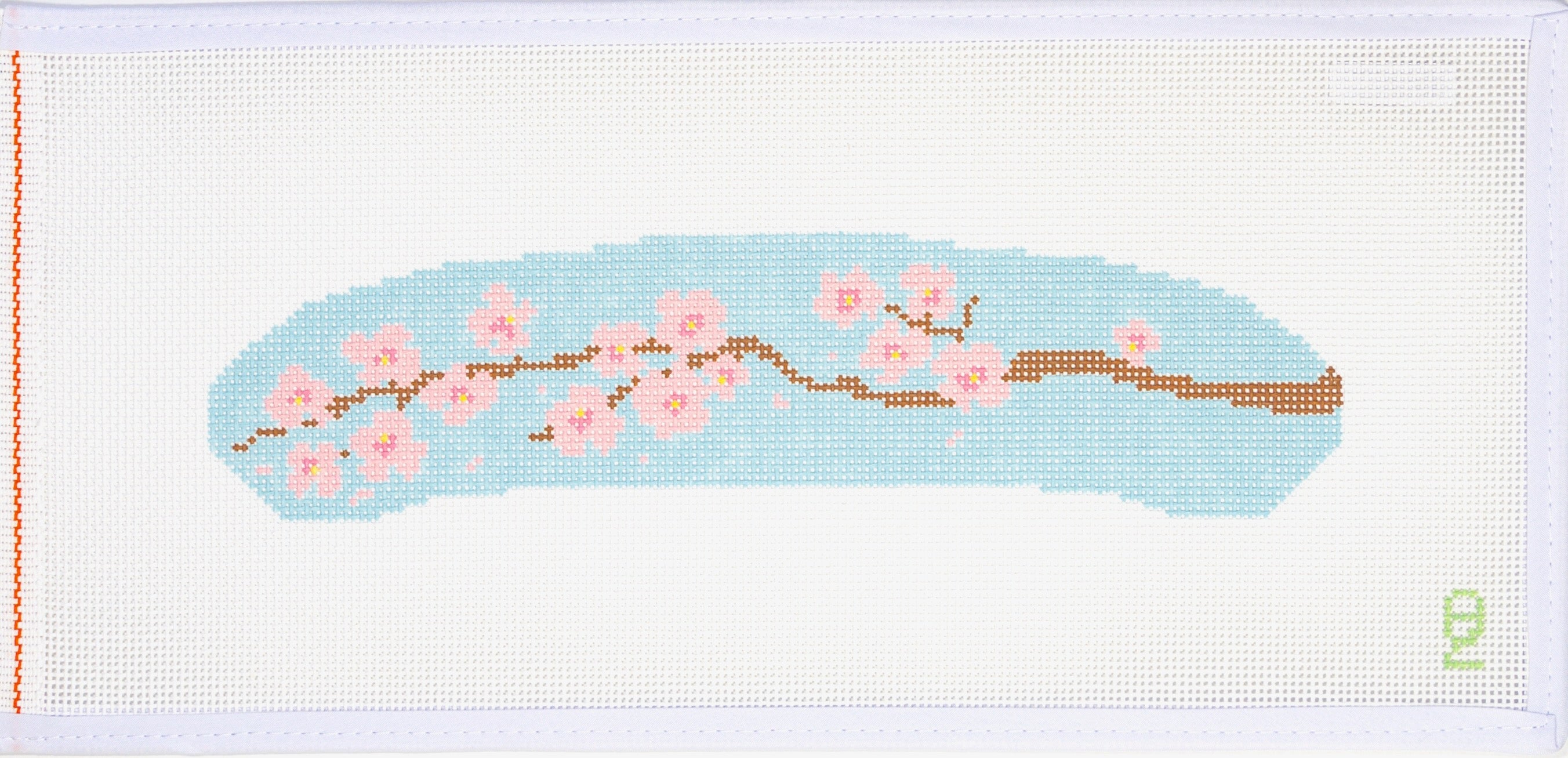 This is a needlepoint canvas from Oz Needle and Thread. It features a hanger design with a cherry blossom pattern.