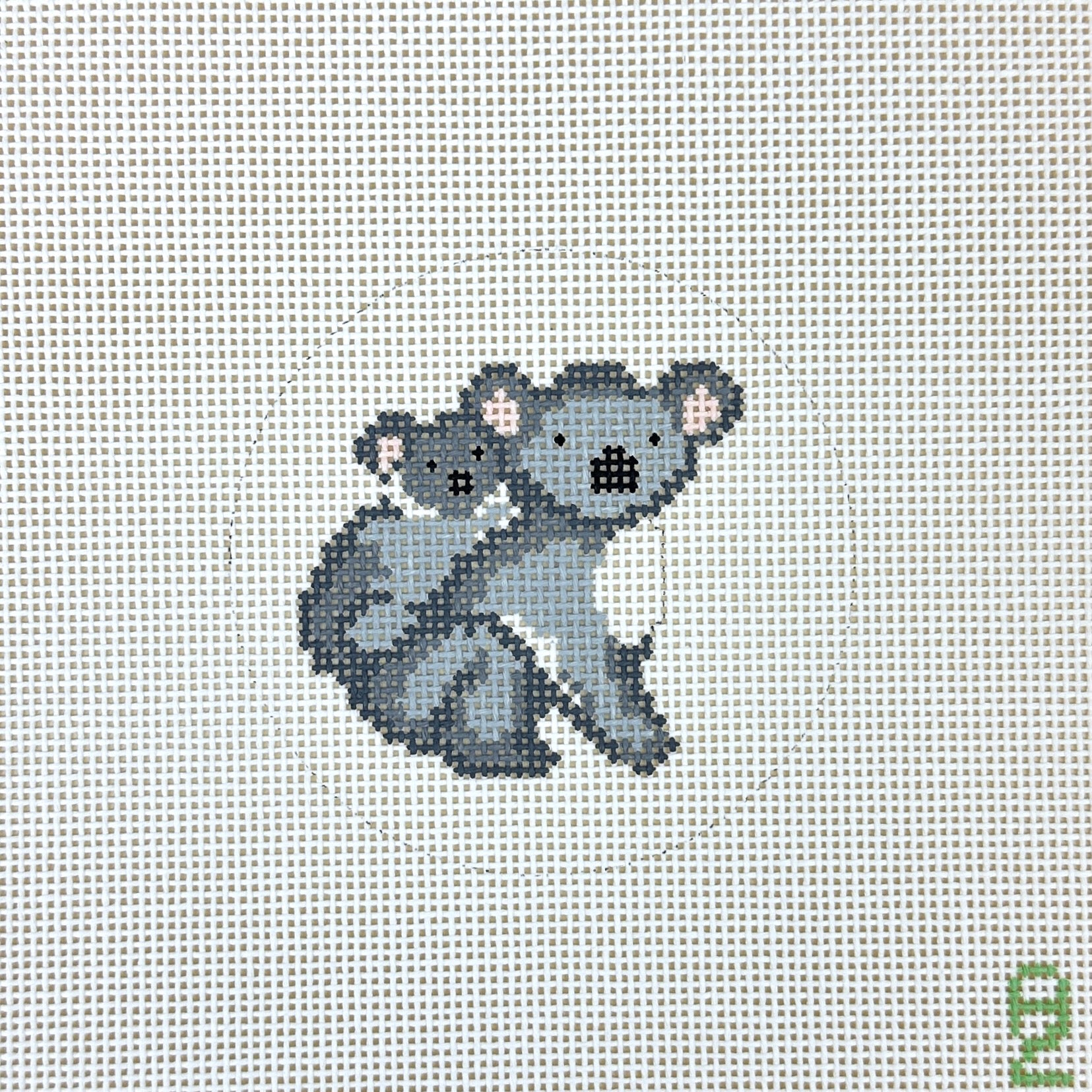This is a needlepoint canvas from Oz Needle and Thread. It features two Koalas snuggling together.