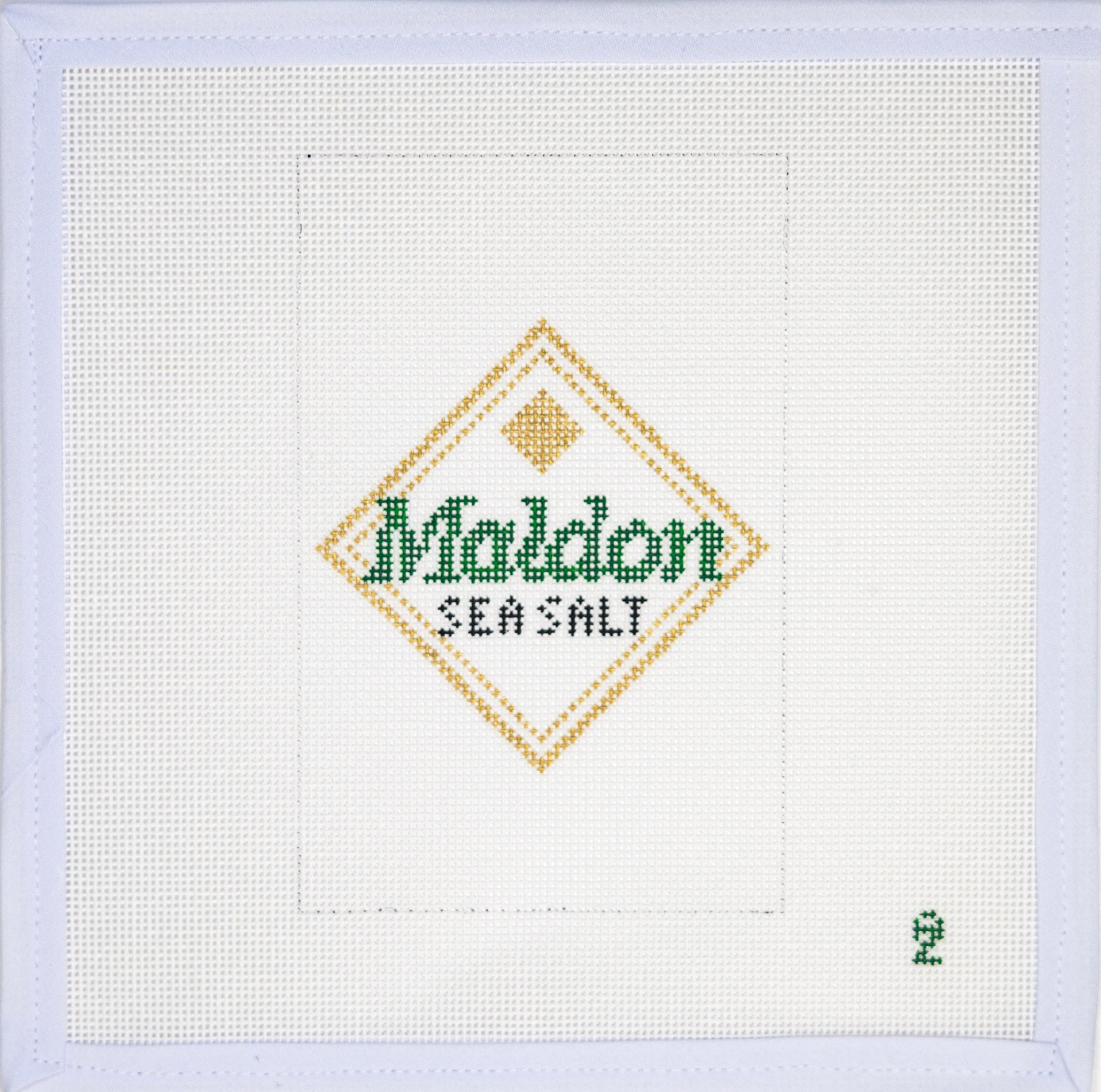 This hand painted needlepoint canvas by Oz Needle and Thread features the beloved brand of salt.