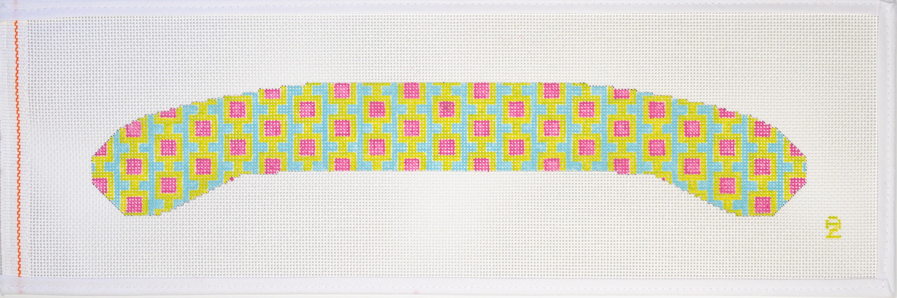 This is a needlepoint canvas from Oz Needle and Thread. It features a hanger design with a geometric pattern inspired by Palm Springs.