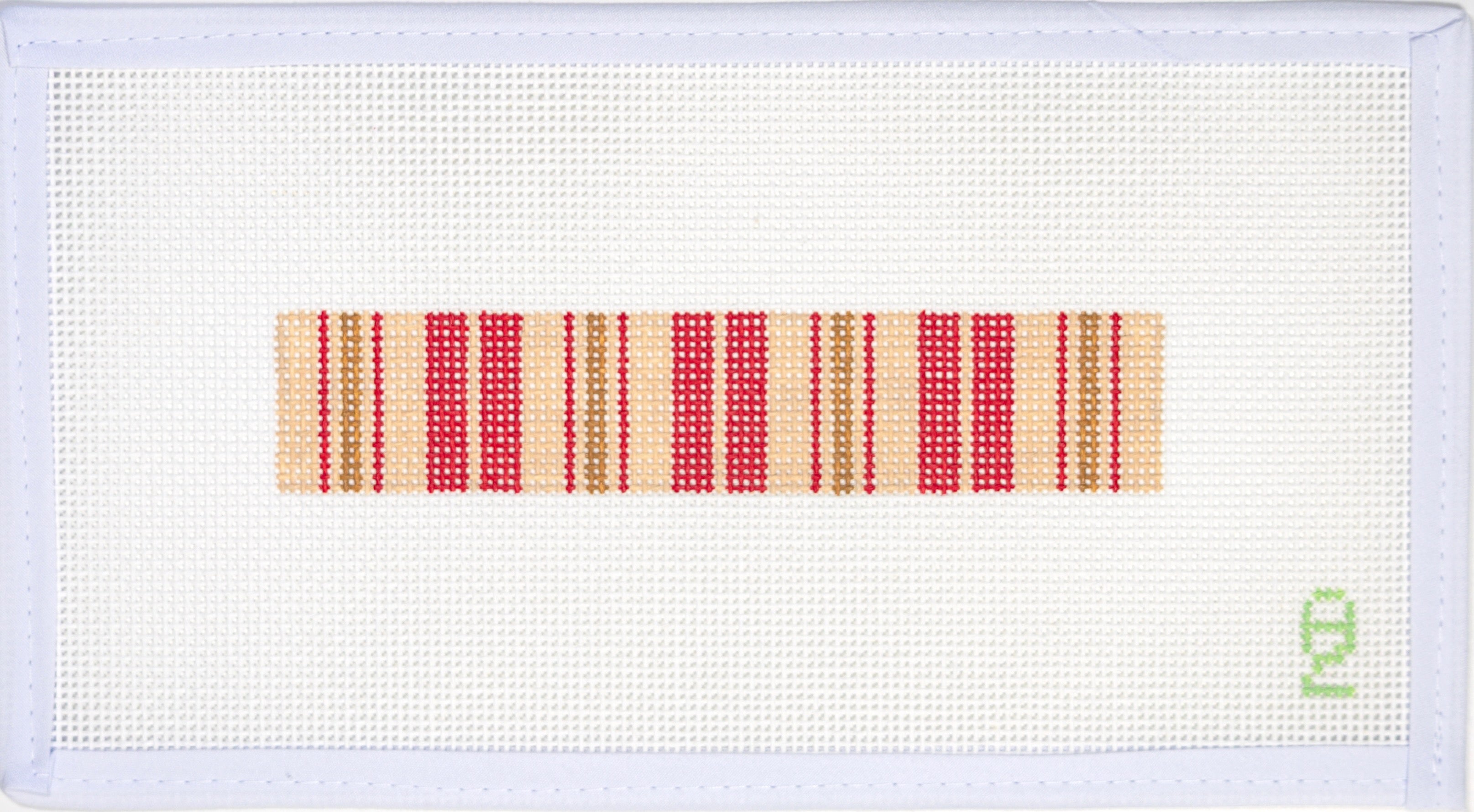This is a needlepoint canvas from Oz Needle and Thread. It features a fob design with a red ticking pattern.
