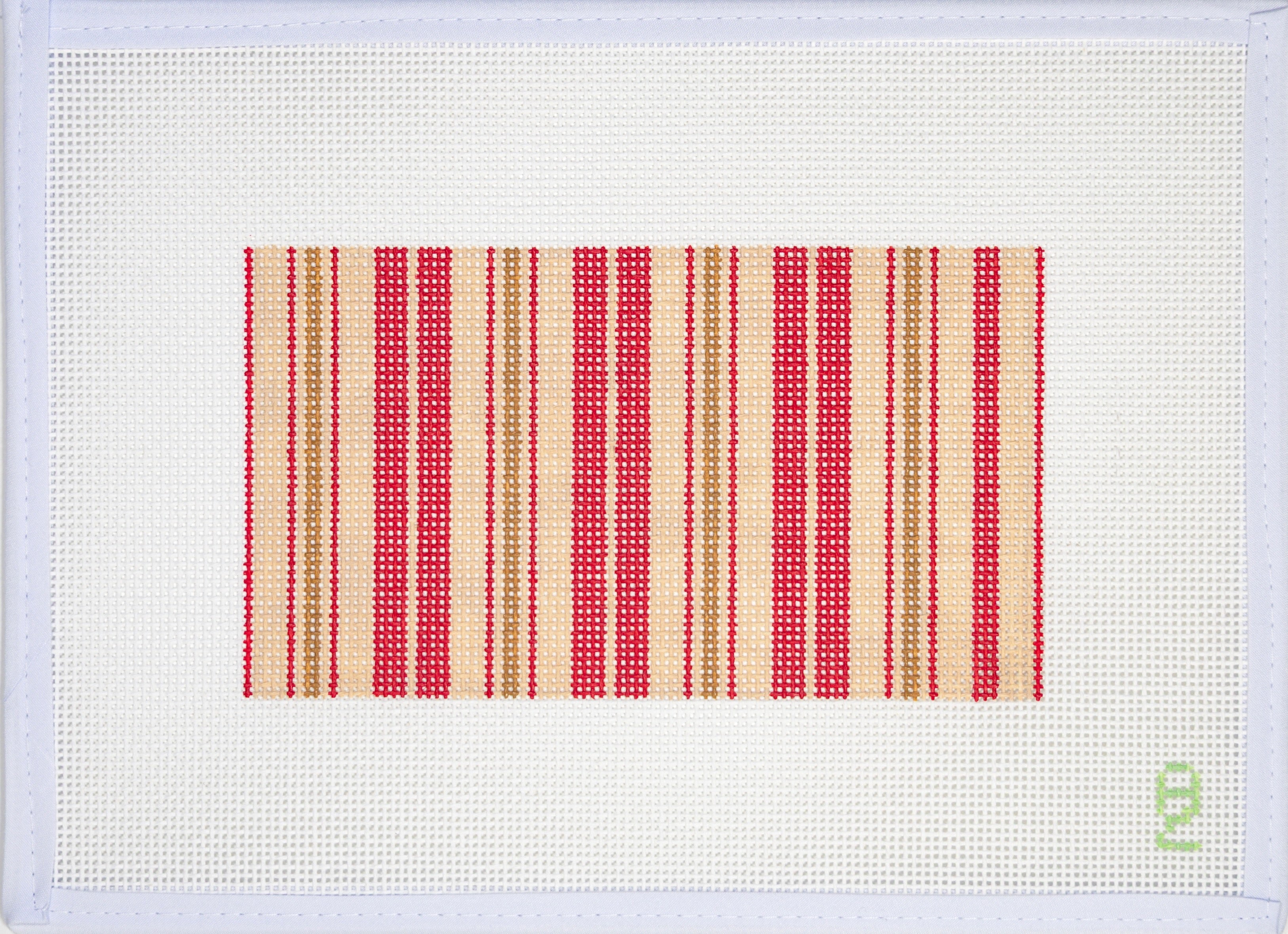 This is a needlepoint canvas from Oz Needle and Thread. It features a glasses case with a red ticking pattern.