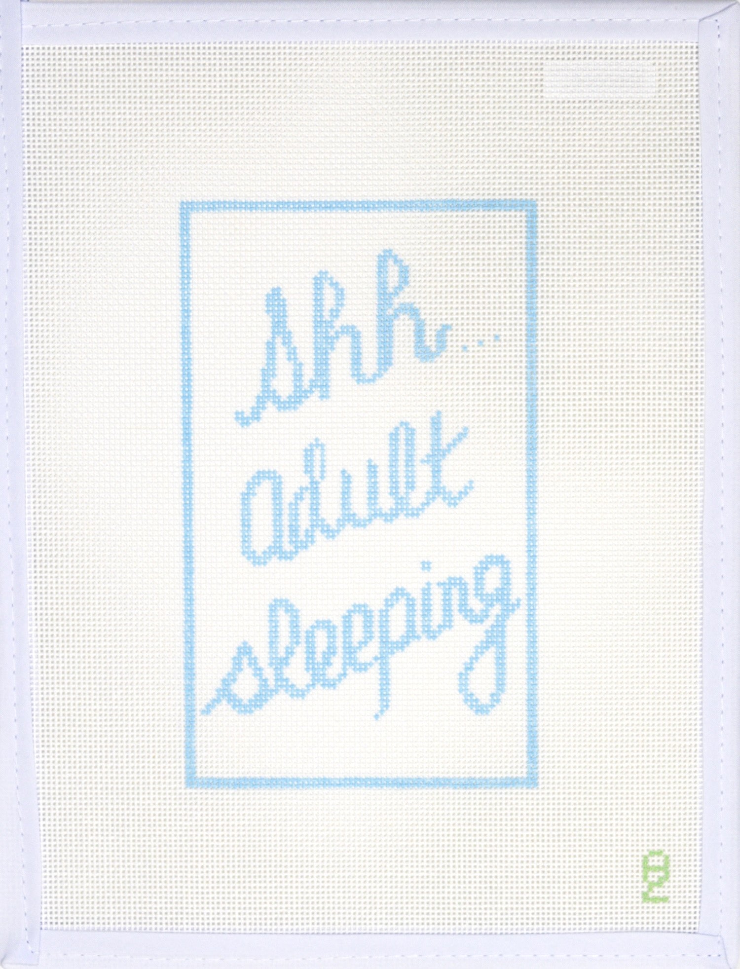 This hand painted needlepoint canvas by Oz Needle and Thread features a sleeping sign for adults!