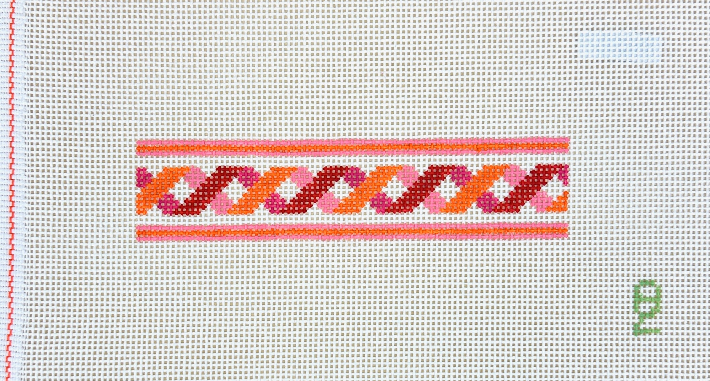 Oz Needle and Thread Twisted Ribbon Fob Red Orange Needlepoint Canvas