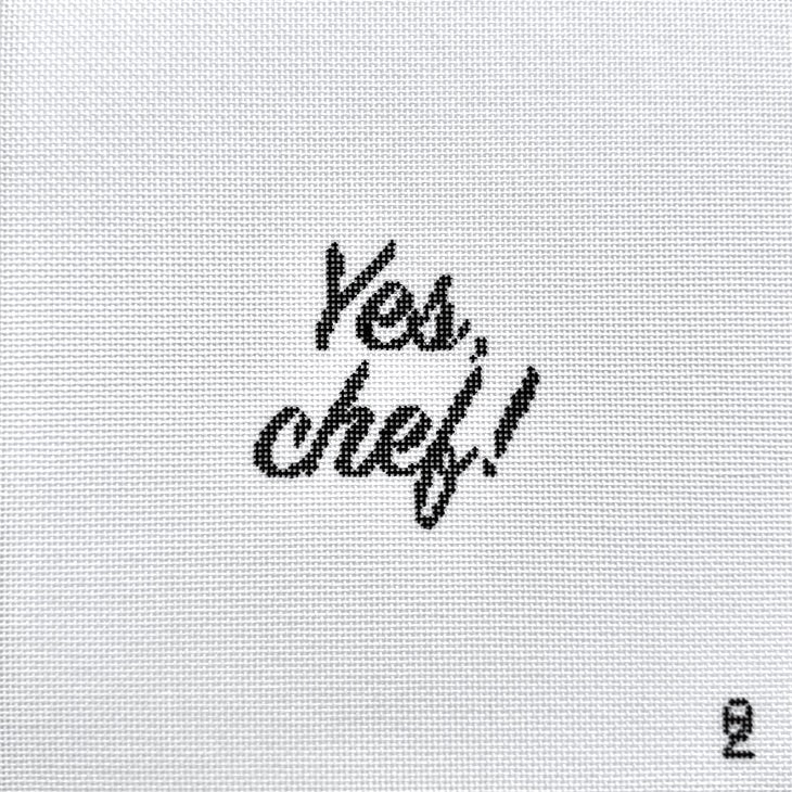 This hand painted needlepoint canvas by Oz Needle and Thread features the only acceptable response from a sous chef in a serious kitchen.