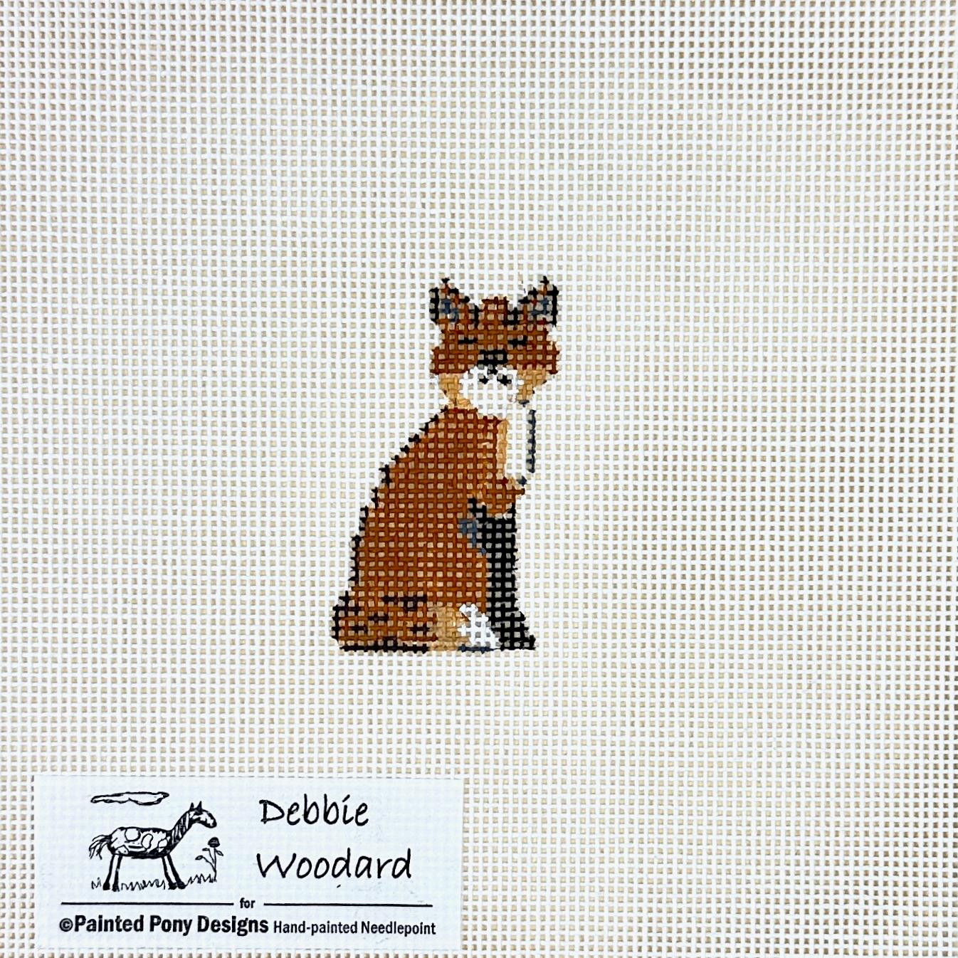 This is a hand painted needlepoint canvas by Painted Pony Designs featuring a cute petite fox..