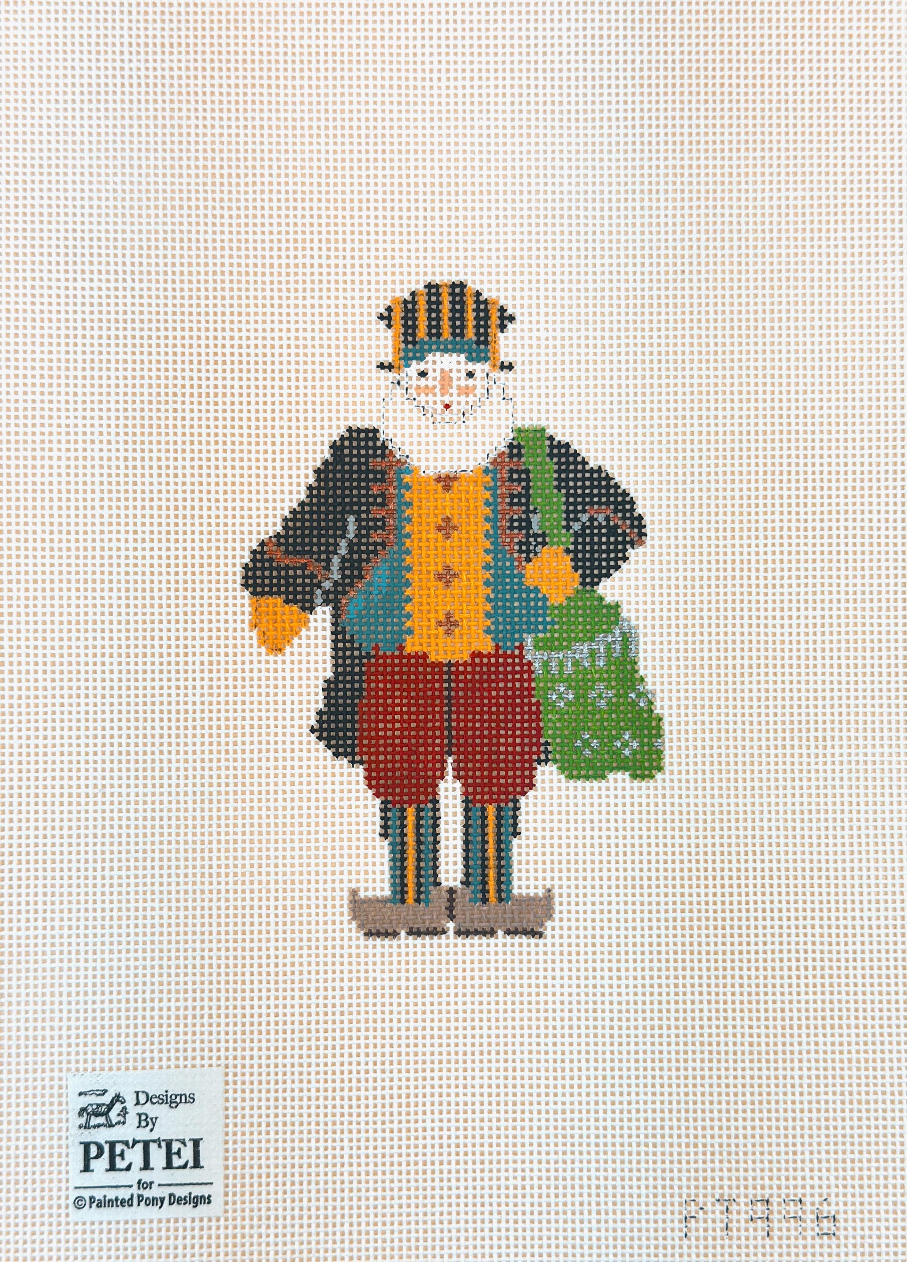 This is a hand painted needlepoint canvas by Petei Designs from Painted Pony Designs. It features a painting of a man wearing old fashioned clothing.