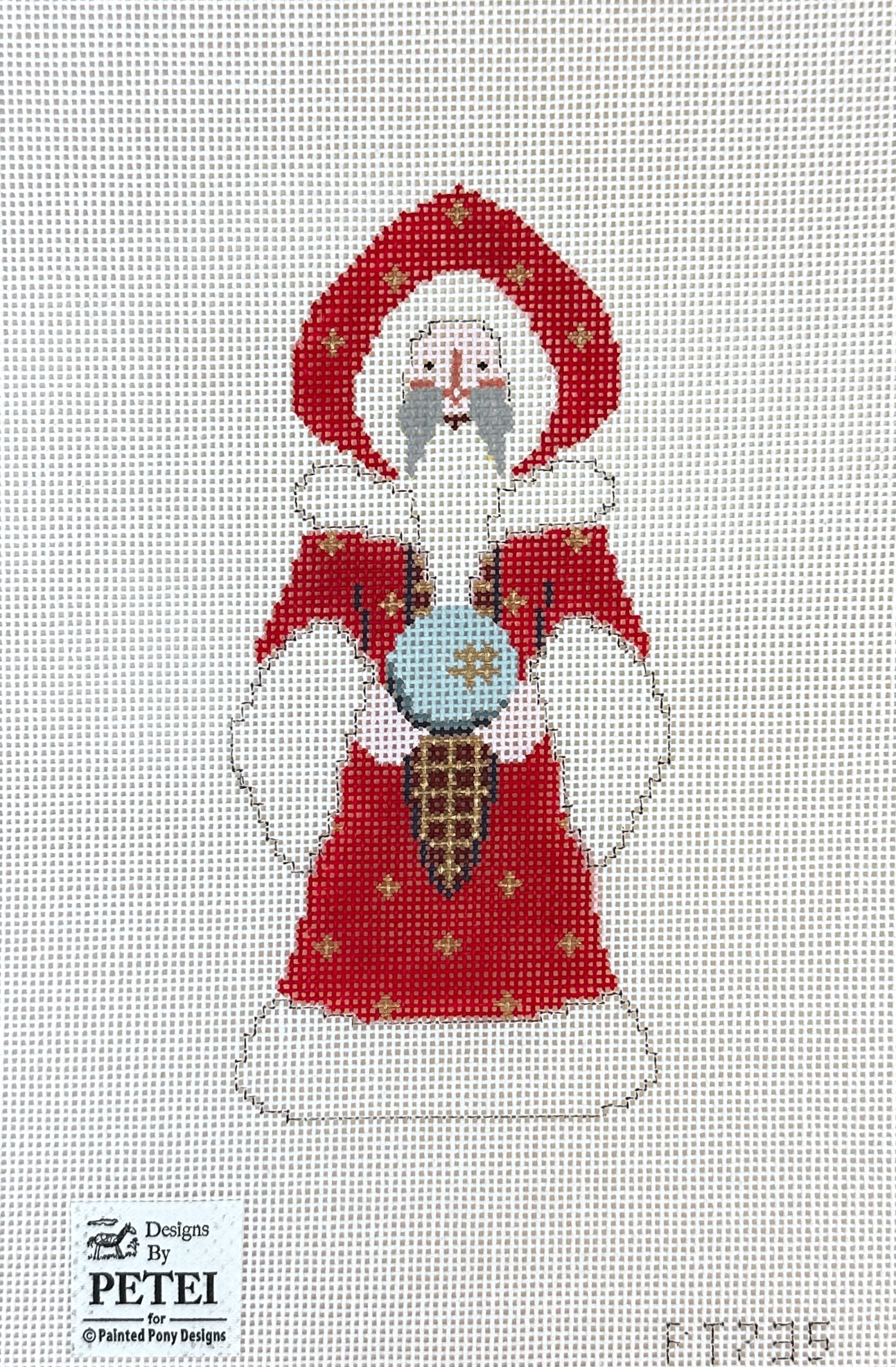 A beautiful hand painted needlepoint canvas from Painted Pony Designs by Petei Designs featuring a the Spirit of Christmas Future.