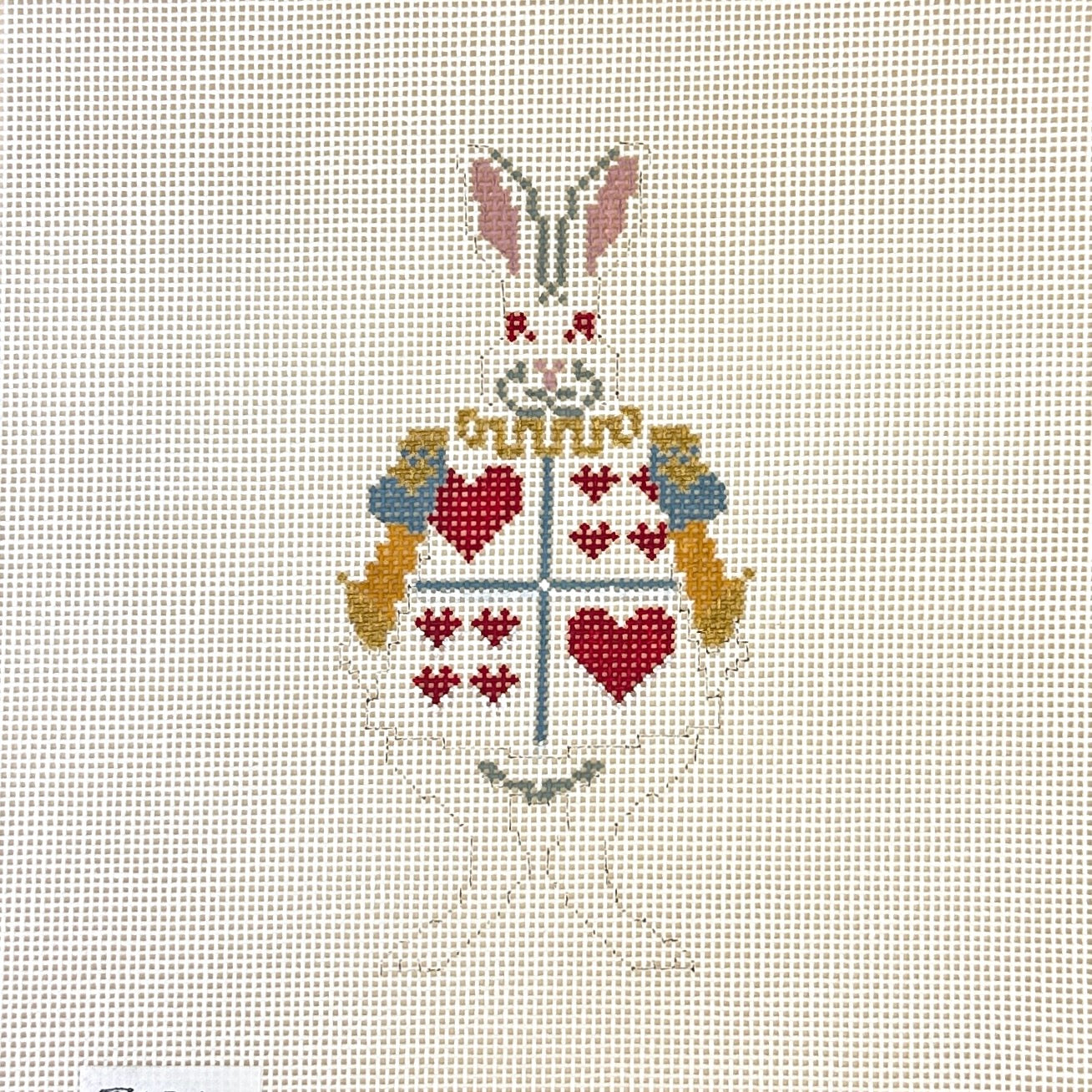 This hand painted needlepoint canvas from Petei for Painted Pony features a mini Court Rabbit from Alice and Wonderland.