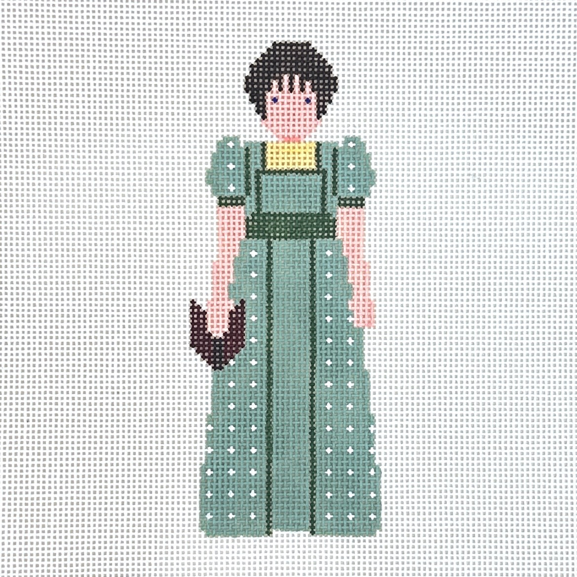 This hand painted needlepoint canvas from Petei for Painted Pony features a mini Elizabeth Bennett from Pride and Prejudice.