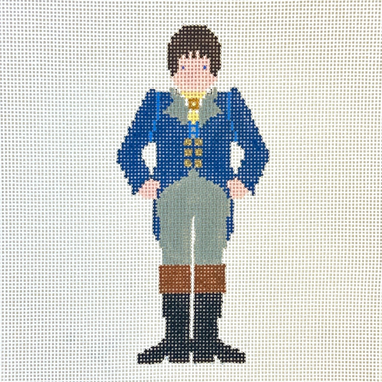 This hand painted needlepoint canvas from Petei for Painted Pony features a mini Mr. Darcy from Pride and Prejudice.