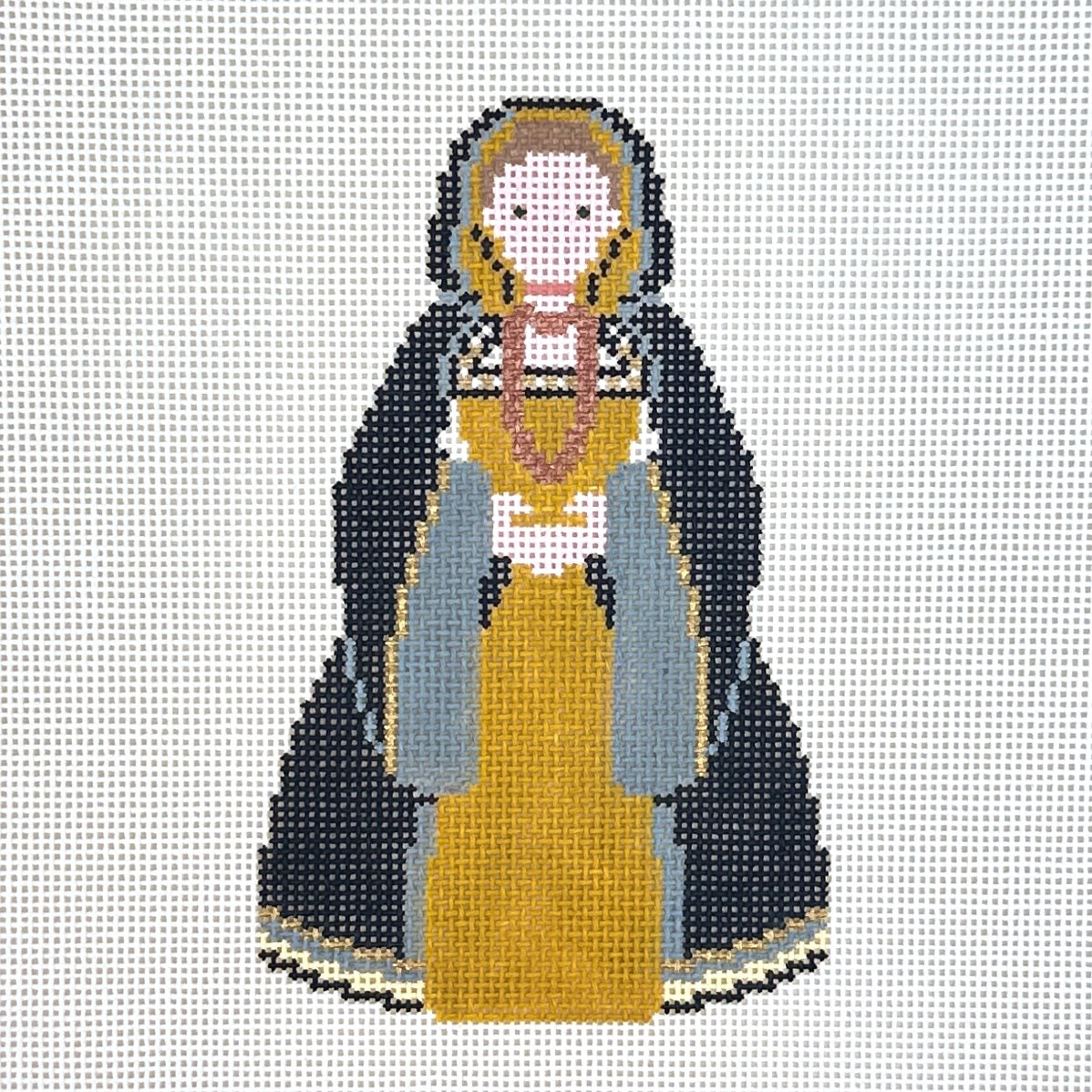 This hand painted needlepoint canvas from Petei for Painted Pony features a mini Catherine of Aragon the first wife of King Henry the eighth.