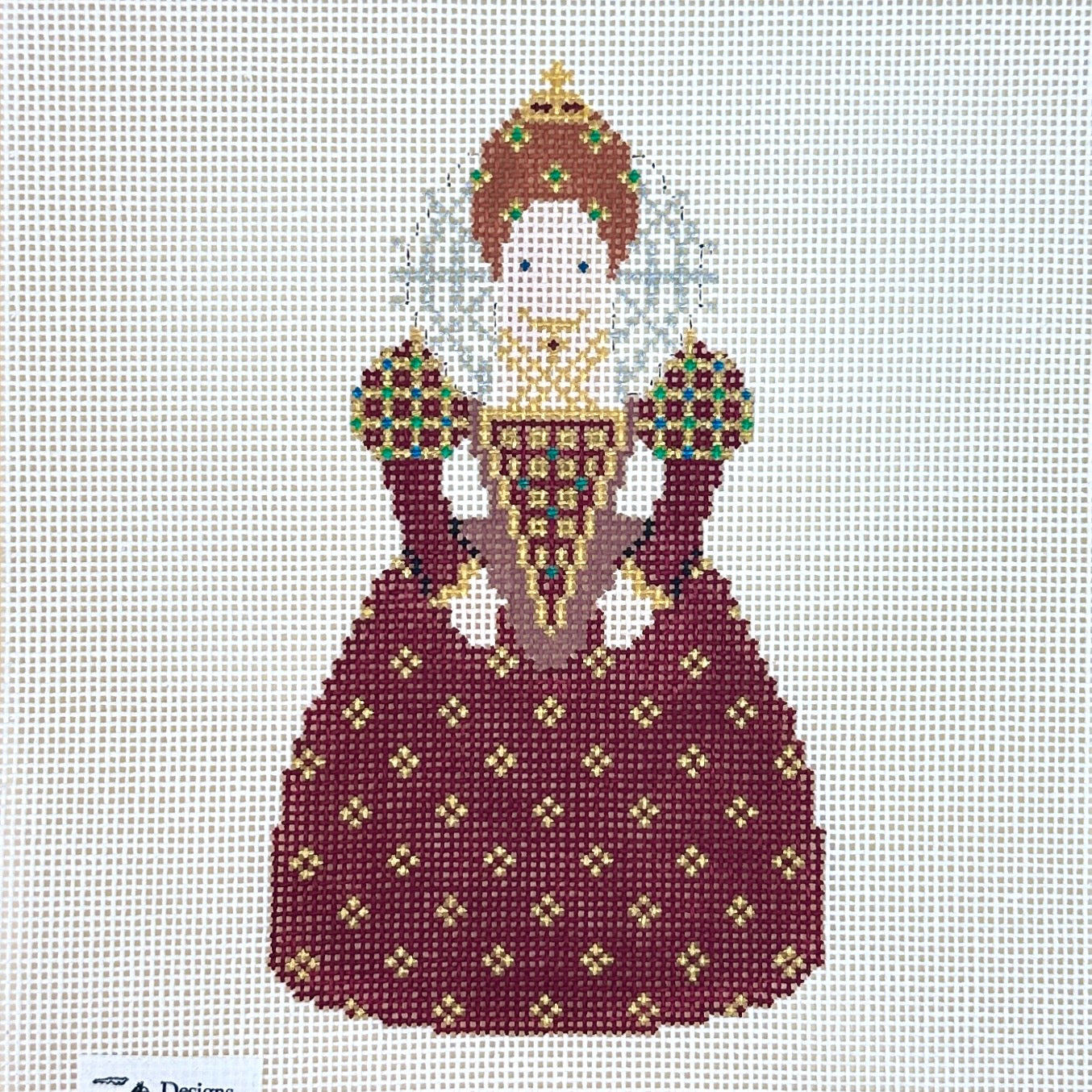 This hand painted needlepoint canvas from Petei for Painted Pony features a mini Queen Elizabeth the first.