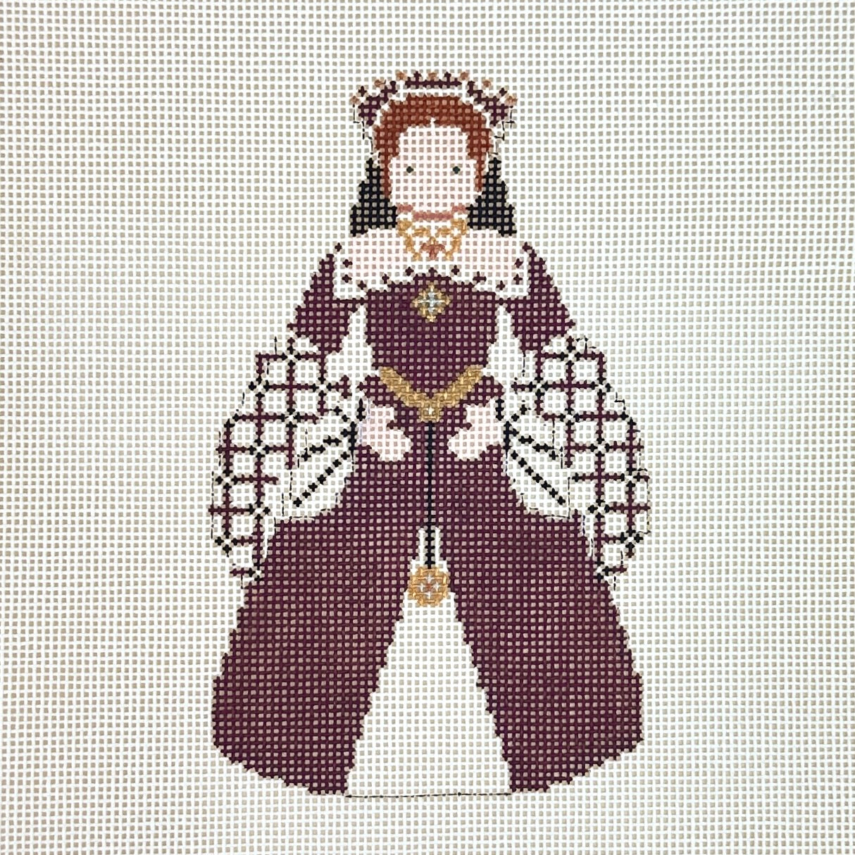 This hand painted needlepoint canvas from Petei for Painted Pony features a mini Mary the first known as "Bloody Mary".