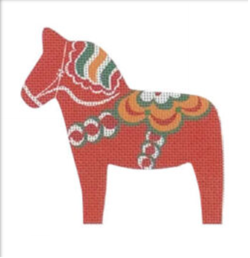 This stitch printed needlepoint canvas by Pepperberry Designs features a classic Swedish Dala horse.