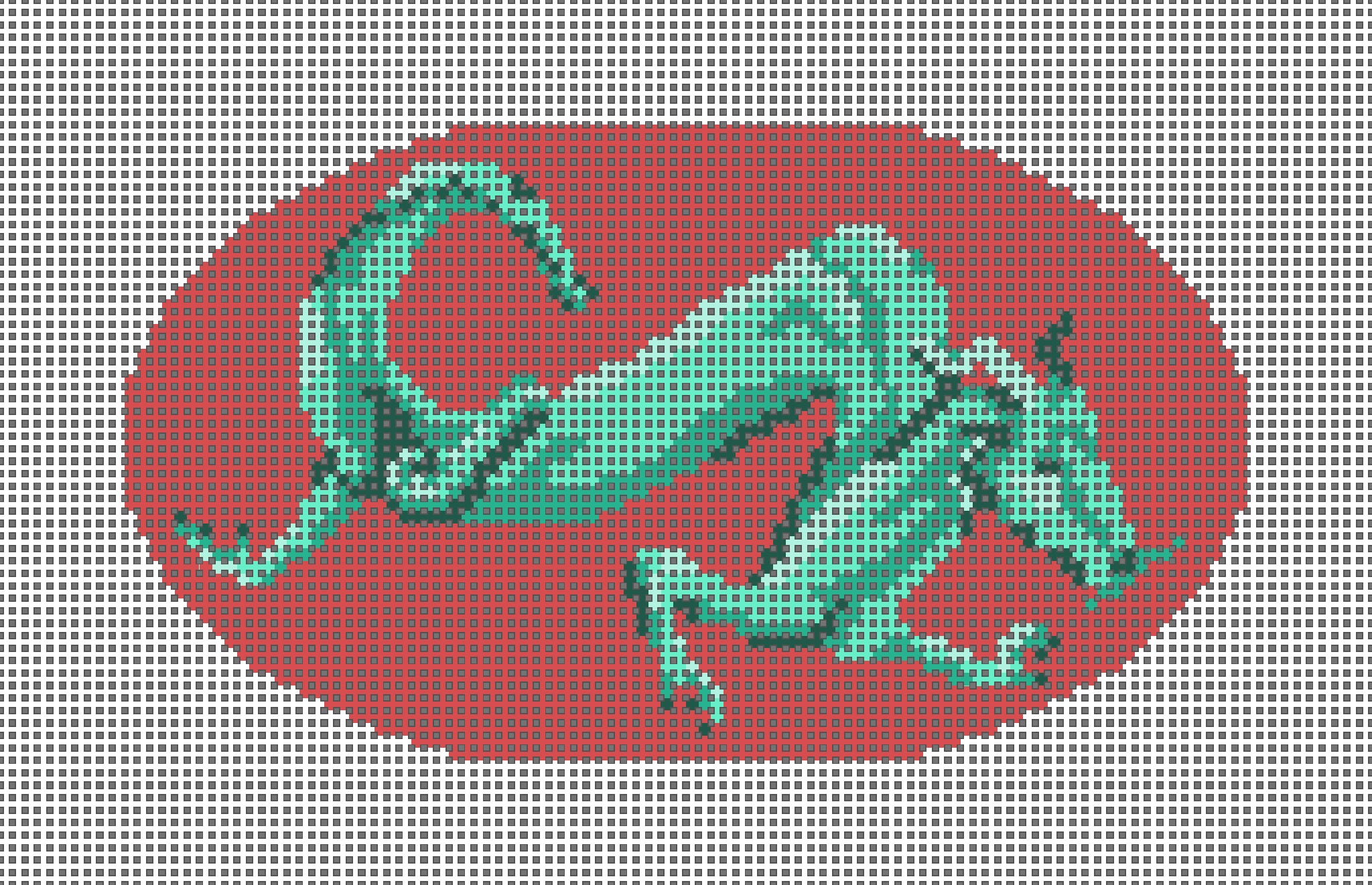 This hand painted needlepoint canvas by Rittenhouse Needlepoint features one of the dragon statues from Dragon Dance located in Philadelphia's Chinatown. Created by Ward Elicker, he cast two dragons in 2009 after attending the Chinese New Year celebration in Chinatown. The work is inspired by the tradition of large paper dragon puppets that dancers use in Chinese holiday parades. In Chinese culture, dragons represent prosperity, happiness, and good luck.