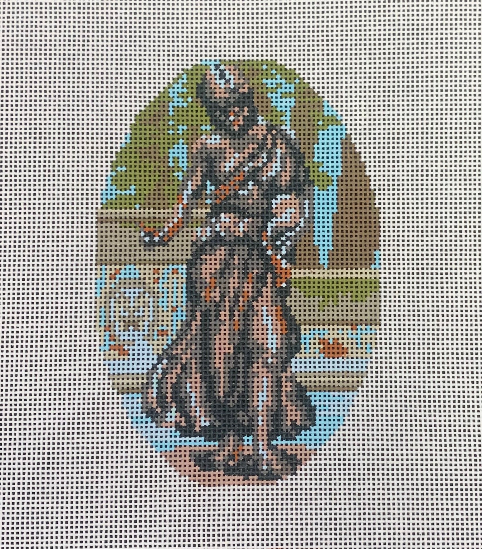 This hand painted needlepoint canvas by Rittenhouse Needlepoint features the Duck Girl statue located in the shop's namesake Rittenhouse Square. Philadelphia has one of the nation's largest collection of public art with over 1500 statues and monuments. Made by Paul Manship in 1911, Duck Girl is a life sized woman and her duck that floats in the center a the fountain in Rittenhouse Square near 19th and Walnut.