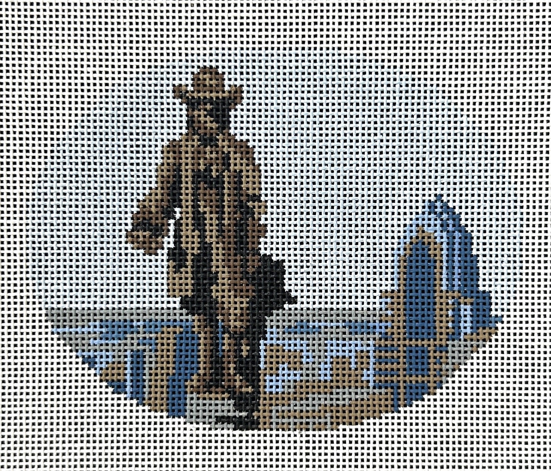 This hand painted needlepoint canvas by Rittenhouse Needlepoint features the William Penn statue located atop Philadelphia's beautiful City Hall. Completed in 1892 by Alexander Milne Calder, this bronze statue is over 36 feet tall and weighs over 53,000 pounds. It honors the influential Quaker who founded the Province of Pennsylvania during the British colonial era. Philadelphia has one of the nation's largest collection of public art with over 1500 statues and monuments.