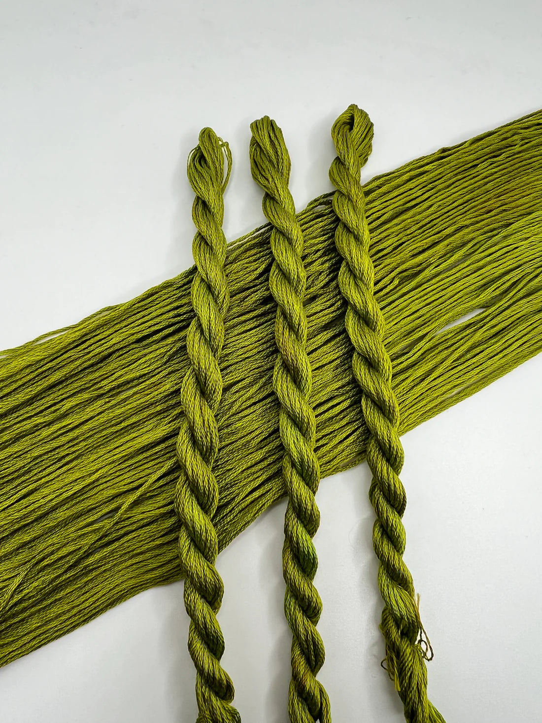 This is 6 Strand Embroidery Floss from Pirate + Robin in color Cactus. Hand-dyed in small batches in Oregon, Pirate + Robin cotton floss features beautiful tonal shades with subtle variations as well as more strongly variegated colorways! Their recipe is inspired by a tie-dye recipe the creator learned as a teenager, resulting in bold and vibrant colors. Skeins have been washed multiple times after dyeing to make them as colorfast as possible. Excellent for embroidery, cross stitch, and needlepoint. Use 3-4 strands on 18 mesh canvas and all 6 strands on 13 mesh.