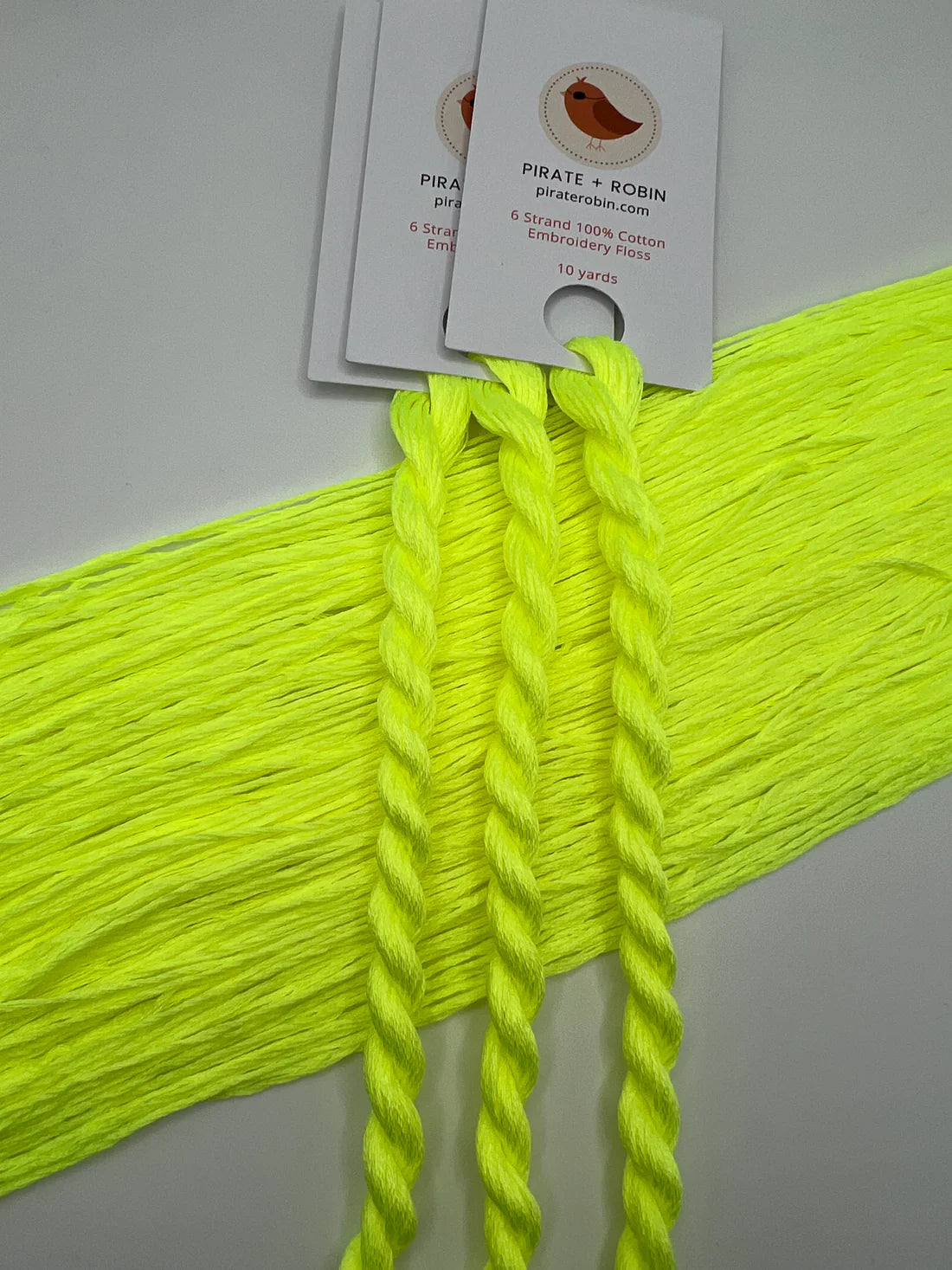 This is 6 Strand Embroidery Floss from Pirate + Robin in color Glow Worm. Hand-dyed in small batches in Oregon, Pirate + Robin cotton floss features beautiful tonal shades with subtle variations as well as more strongly variegated colorways! Their recipe is inspired by a tie-dye recipe the creator learned as a teenager, resulting in bold and vibrant colors. Skeins have been washed multiple times after dyeing to make them as colorfast as possible. Excellent for embroidery, cross stitch, and needlepoint. Use 3-4 strands on 18 mesh canvas and all 6 strands on 13 mesh.