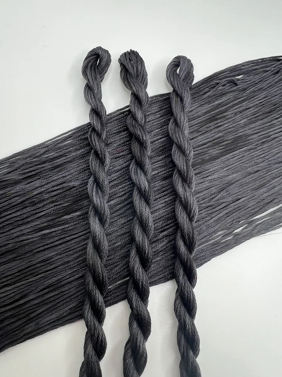 This is 6 Strand Embroidery Floss from Pirate + Robin in color Graphite. Hand-dyed in small batches in Oregon, Pirate + Robin cotton floss features beautiful tonal shades with subtle variations as well as more strongly variegated colorways! Their recipe is inspired by a tie-dye recipe the creator learned as a teenager, resulting in bold and vibrant colors. Skeins have been washed multiple times after dyeing to make them as colorfast as possible. Excellent for embroidery, cross stitch, and needlepoint. Use 3-4 strands on 18 mesh canvas and all 6 strands on 13 mesh.