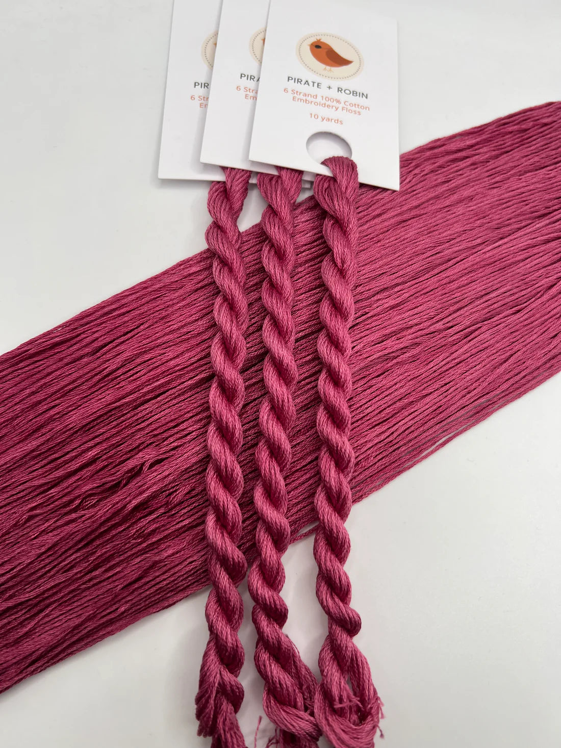 This is 6 Strand Embroidery Floss from Pirate + Robin in color Hyacinth. Hand-dyed in small batches in Oregon, Pirate + Robin cotton floss features beautiful tonal shades with subtle variations as well as more strongly variegated colorways! Their recipe is inspired by a tie-dye recipe the creator learned as a teenager, resulting in bold and vibrant colors. Skeins have been washed multiple times after dyeing to make them as colorfast as possible. Excellent for embroidery, cross stitch, and needlepoint. Use 3-4 strands on 18 mesh canvas and all 6 strands on 13 mesh.