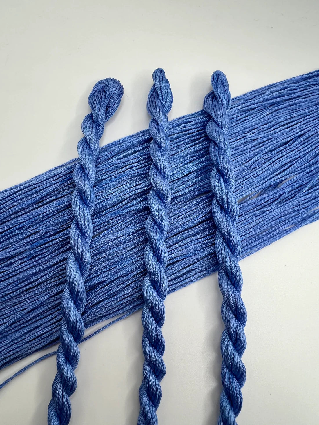 This is 6 Strand Embroidery Floss from Pirate + Robin in color Periwinkle. Hand-dyed in small batches in Oregon, Pirate + Robin cotton floss features beautiful tonal shades with subtle variations as well as more strongly variegated colorways! Their recipe is inspired by a tie-dye recipe the creator learned as a teenager, resulting in bold and vibrant colors. Skeins have been washed multiple times after dyeing to make them as colorfast as possible. Excellent for embroidery, cross stitch, and needlepoint. Use 3-4 strands on 18 mesh canvas and all 6 strands on 13 mesh.