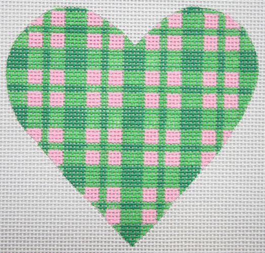 Kate Dickerson Needlepoint Collections Plaid Mini Heart - Greens on Pink Needlepoint Canvas