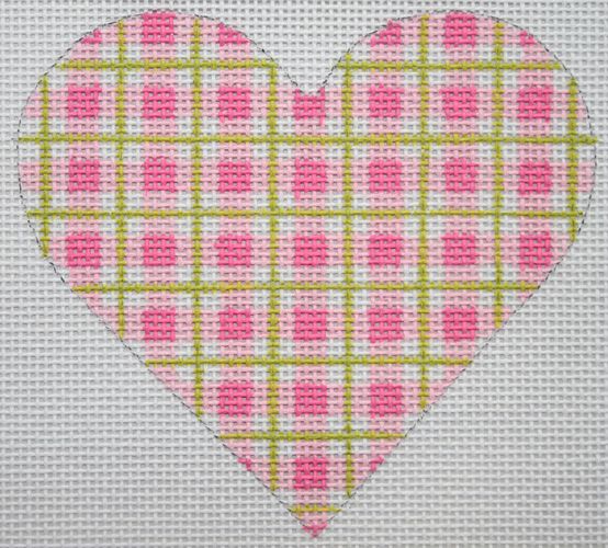 Kate Dickerson Needlepoint Collections Plaid Pinks & Greens Mini Heart Needlepoint Canvas