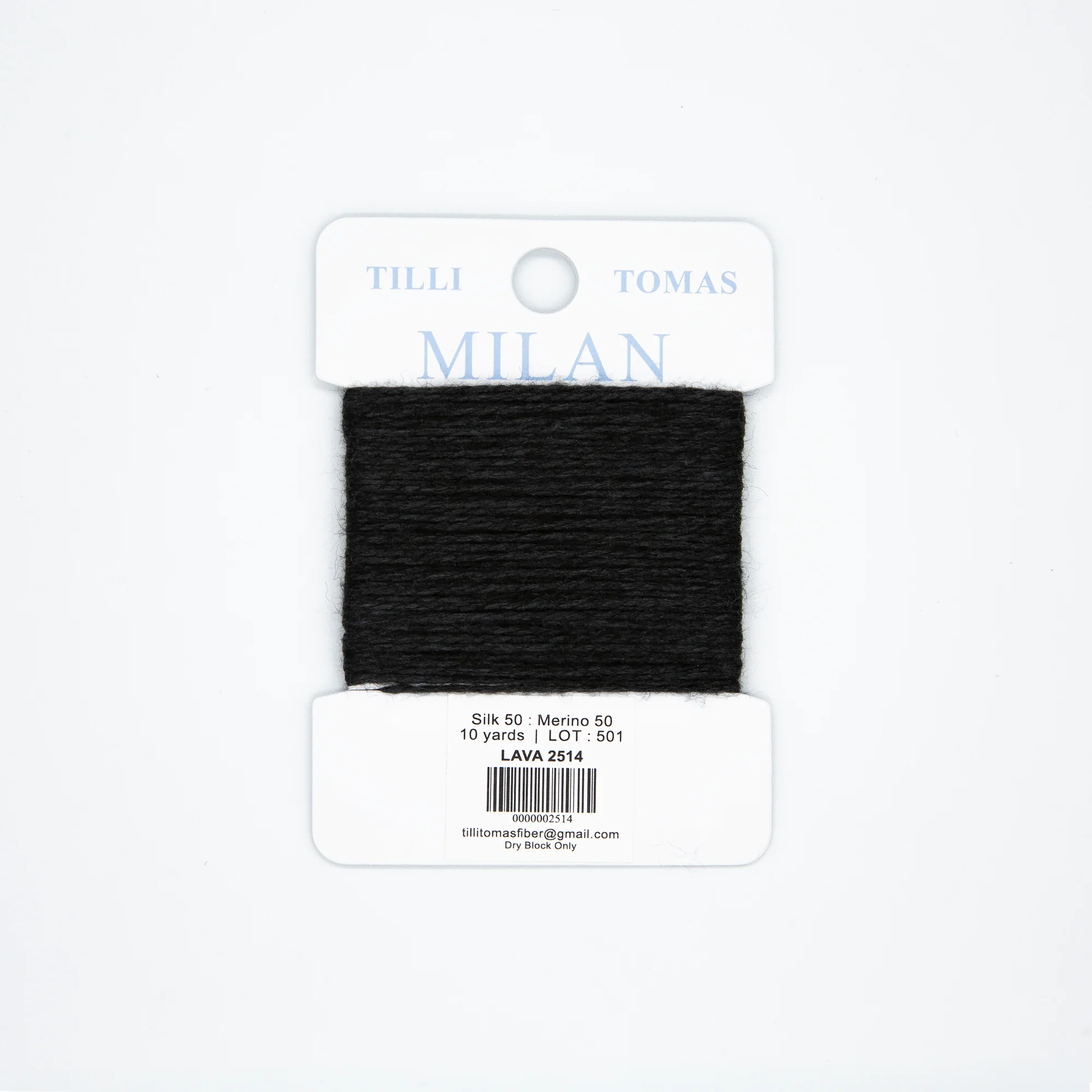 This is a Milan color card from Planet Earth in Lava. A soft silk-wool blend that is perfect for pillows. 1 ply on 13 mesh. Colors match Essentials.