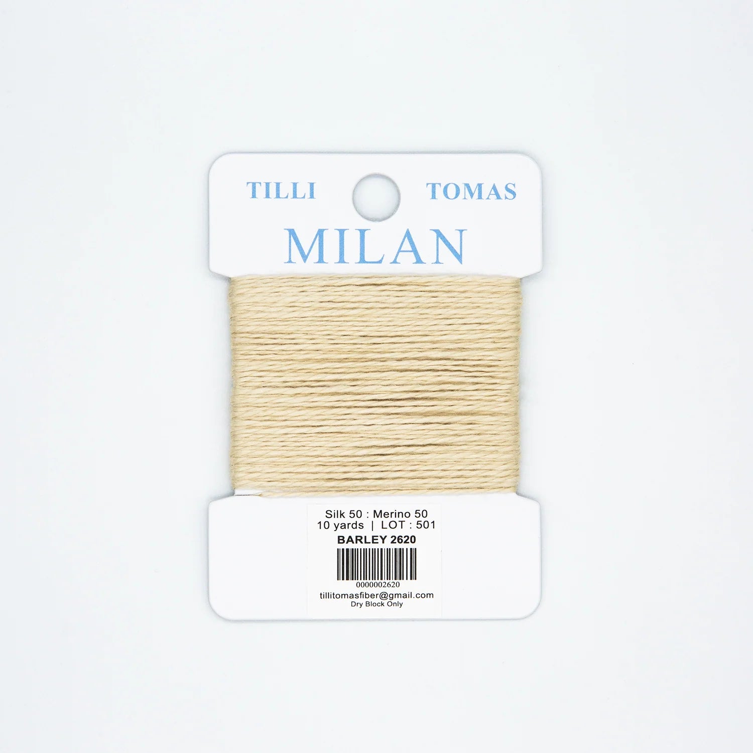 This is a Milan color card from Planet Earth in Barley. A soft silk-wool blend that is perfect for pillows. 1 ply on 13 mesh. Colors match Essentials.