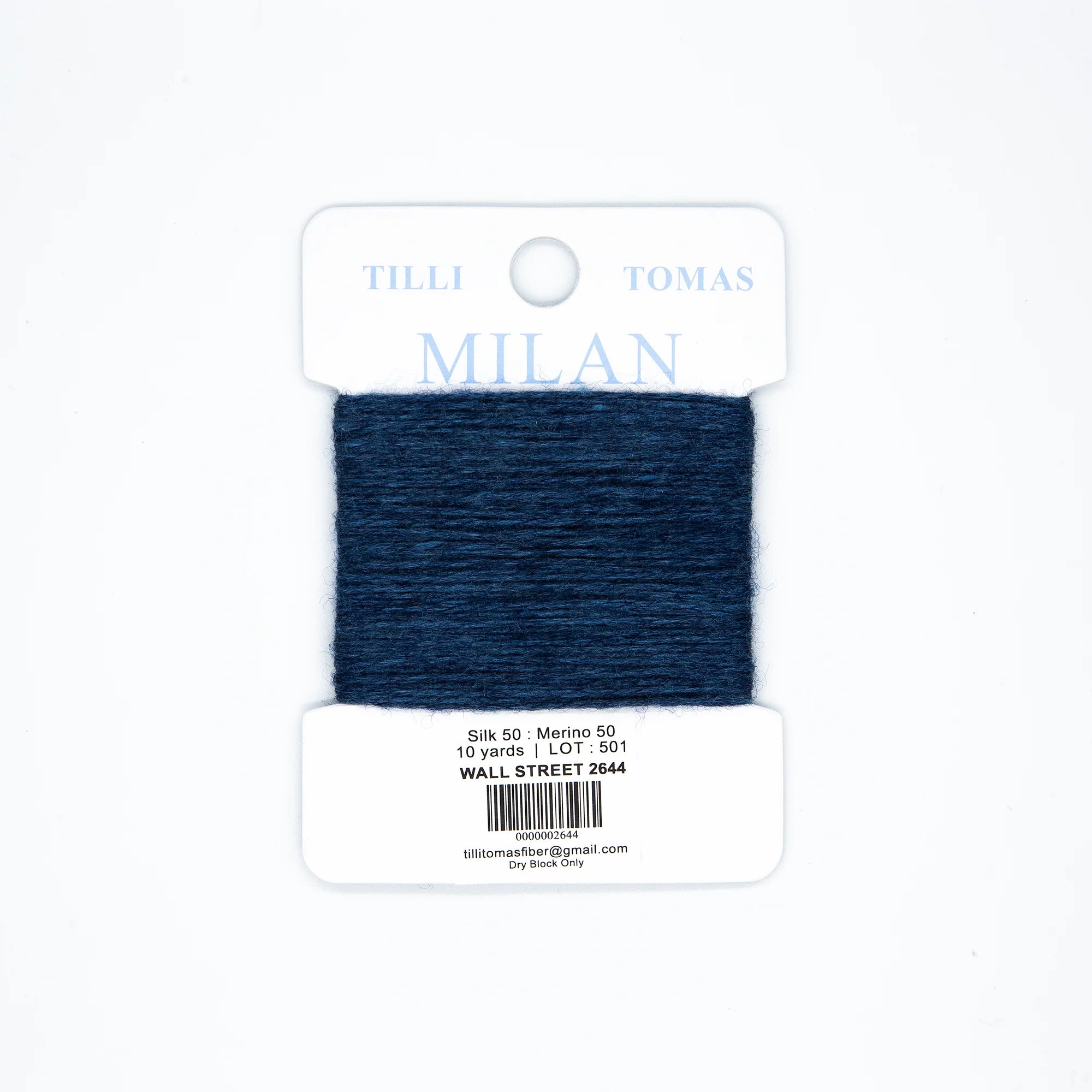 This is a Milan color card from Planet Earth in Wall Street. A soft silk-wool blend that is perfect for pillows. 1 ply on 13 mesh. Colors match Essentials.
