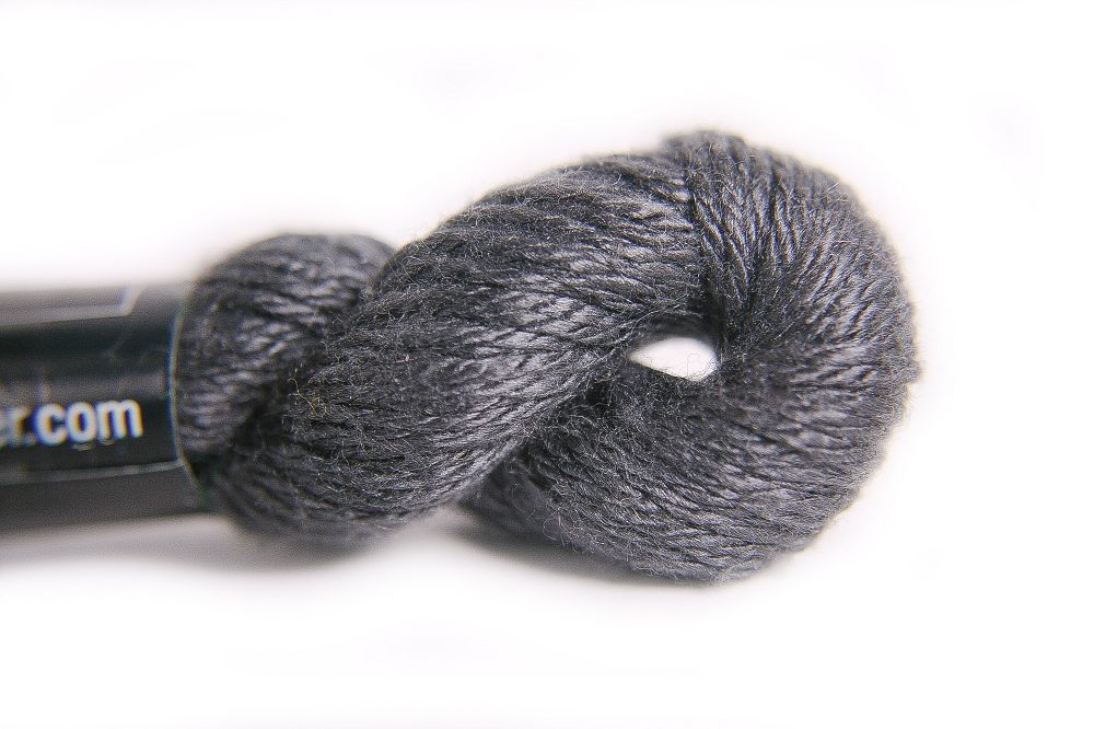 This is Pepper Pot Silk from Planet Earth in color 006 Caviar. Rich silks in a wide variety of colors.1 ply on 18 mesh.