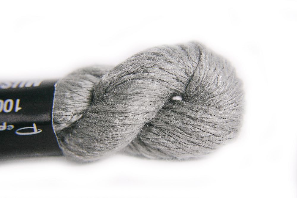 This is Pepper Pot Silk from Planet Earth in color 009 Mushroom. Rich silks in a wide variety of colors.1 ply on 18 mesh.