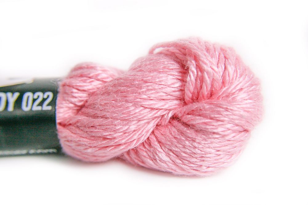 This is Pepper Pot Silk from Planet Earth in color 022 Cotton Candy. Rich silks in a wide variety of colors.1 ply on 18 mesh.