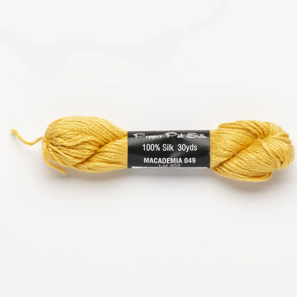This is Pepper Pot Silk from Planet Earth in color 049 Macadamia. Rich silks in a wide variety of colors.1 ply on 18 mesh.