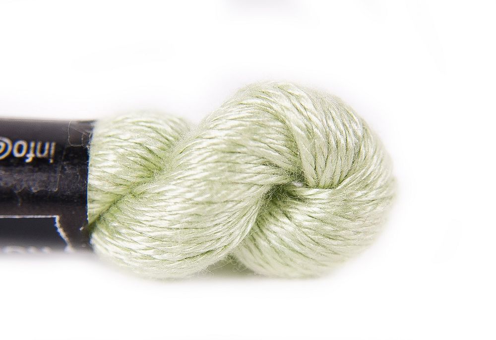 This is Pepper Pot Silk from Planet Earth in color 085 Honeydew. Rich silks in a wide variety of colors.1 ply on 18 mesh.
