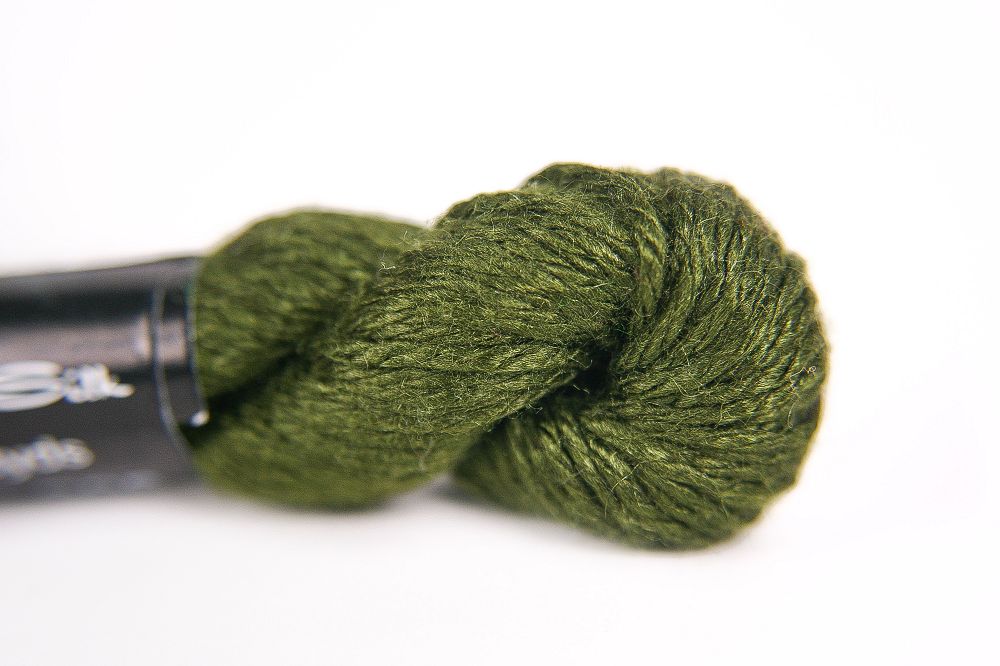 This is Pepper Pot Silk from Planet Earth in color 096 Avocado. Rich silks in a wide variety of colors.1 ply on 18 mesh.