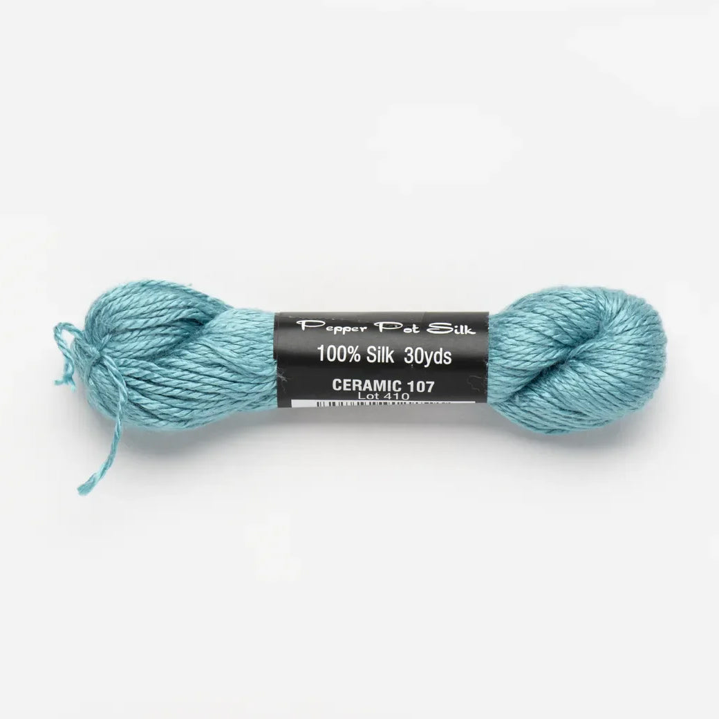 This is Pepper Pot Silk from Planet Earth in color 107 Ceramic. Rich silks in a wide variety of colors.1 ply on 18 mesh.