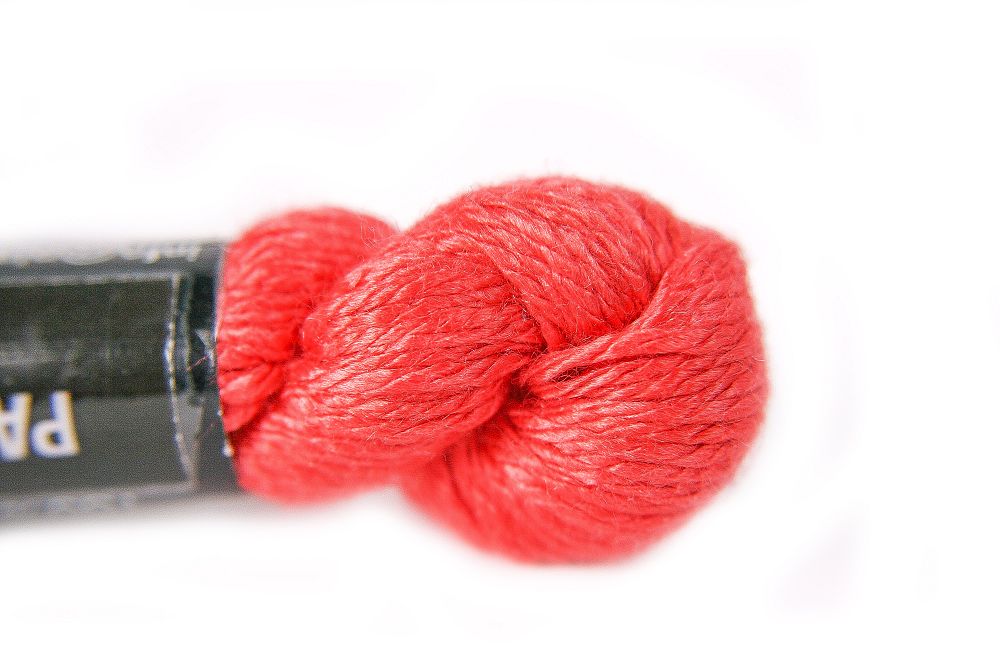This is Pepper Pot Silk from Planet Earth in color 126 Paprika. Rich silks in a wide variety of colors.1 ply on 18 mesh.