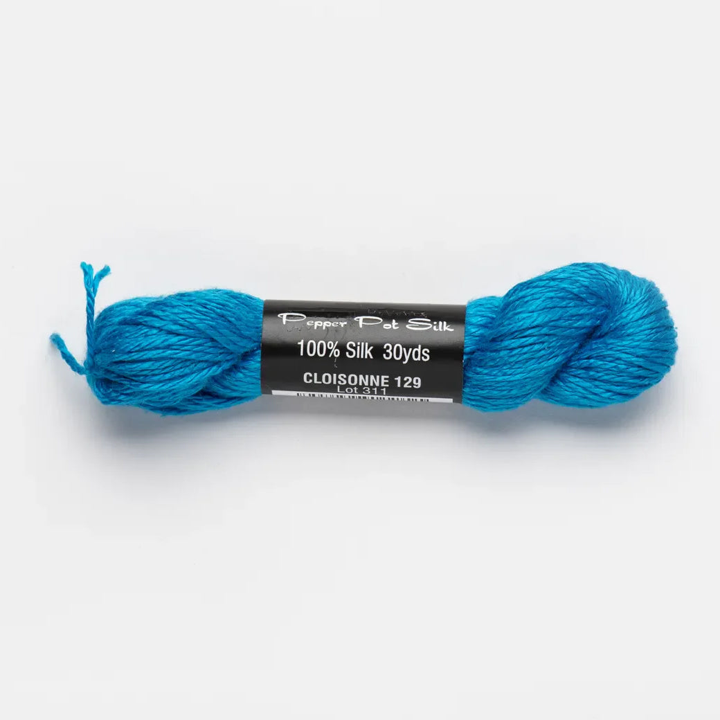 This is Pepper Pot Silk from Planet Earth in color 129 Cloisonne. Rich silks in a wide variety of colors.1 ply on 18 mesh.