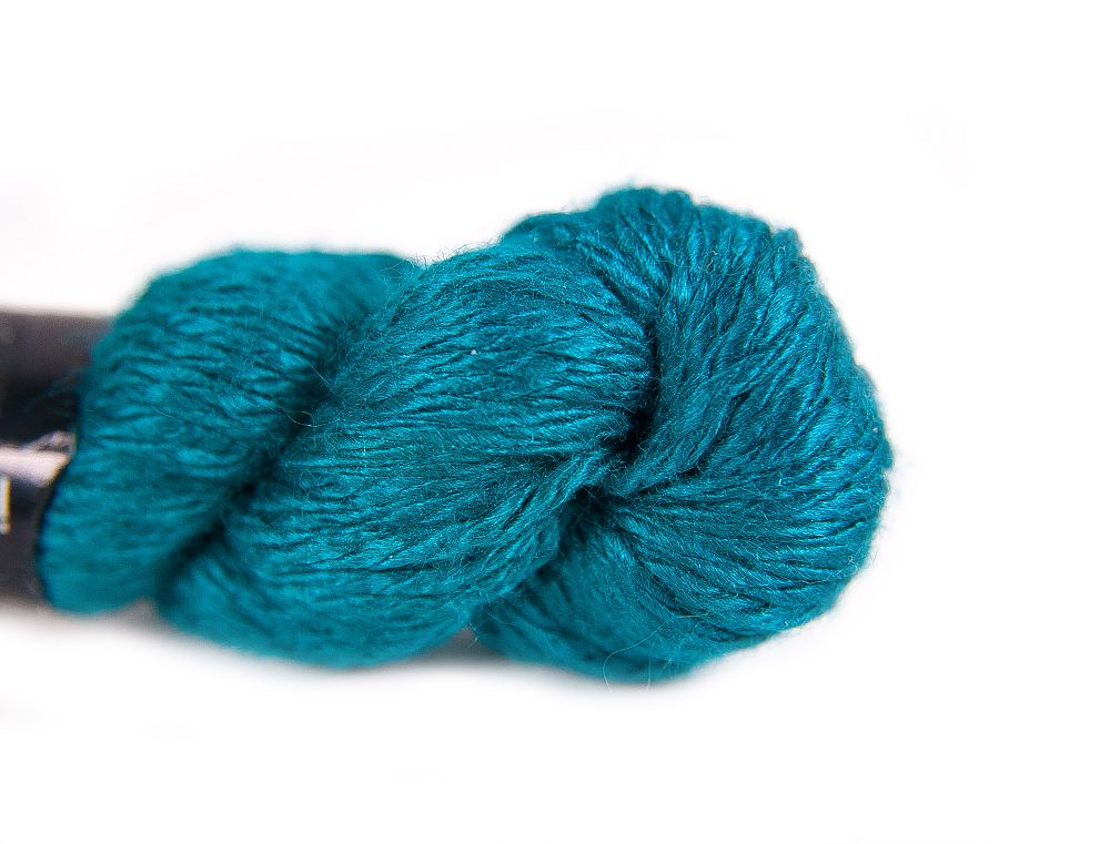 This is Pepper Pot Silk from Planet Earth in color 178 Peacock. Rich silks in a wide variety of colors.1 ply on 18 mesh.